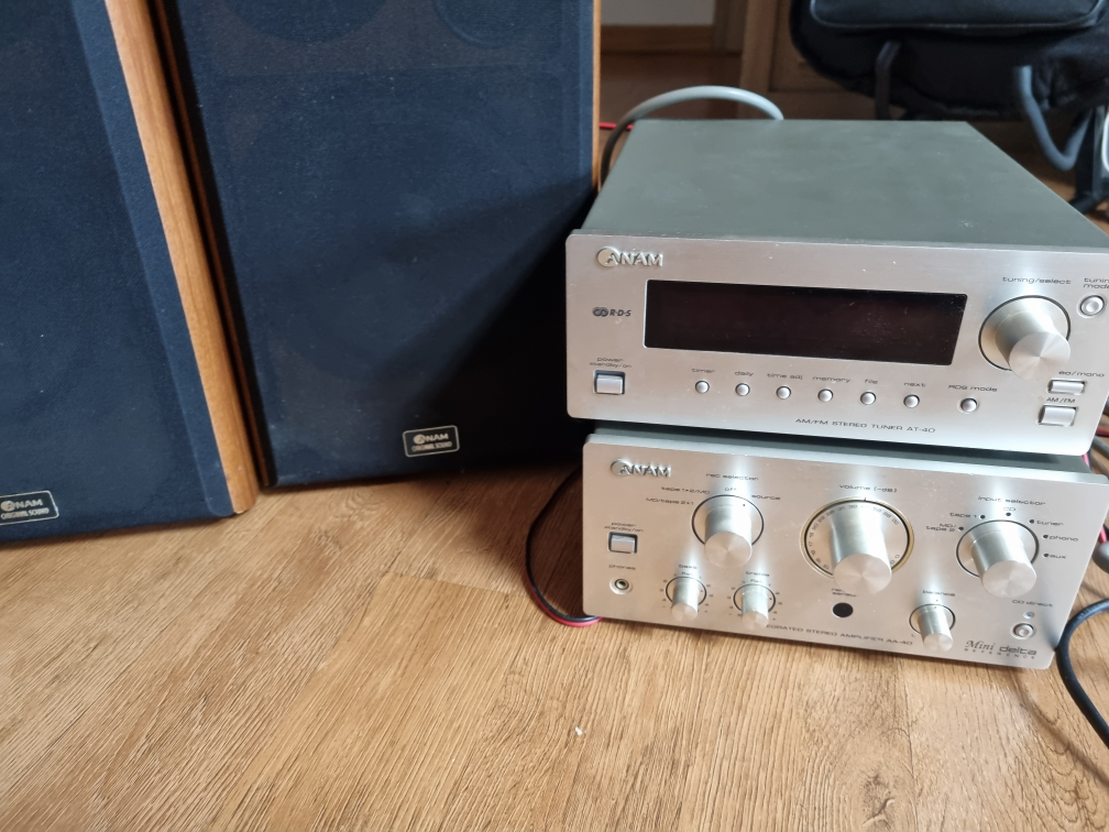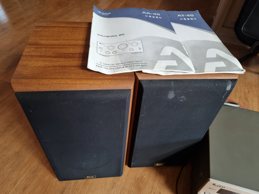 아까 간단히 올렸다가 점검하고 글수정합니다 아남 AA-40 미니오디오 AT-40 튜너 정상작동 AA-40 앰프 정상작동 AS-40 스피커 2개 중 하나 소리 안남 튜너 앰프 상태좋고 스피커에 검은색천부분이 하나는 얼룩이 있습니다 나무부분 기스없이 깨끗합니다