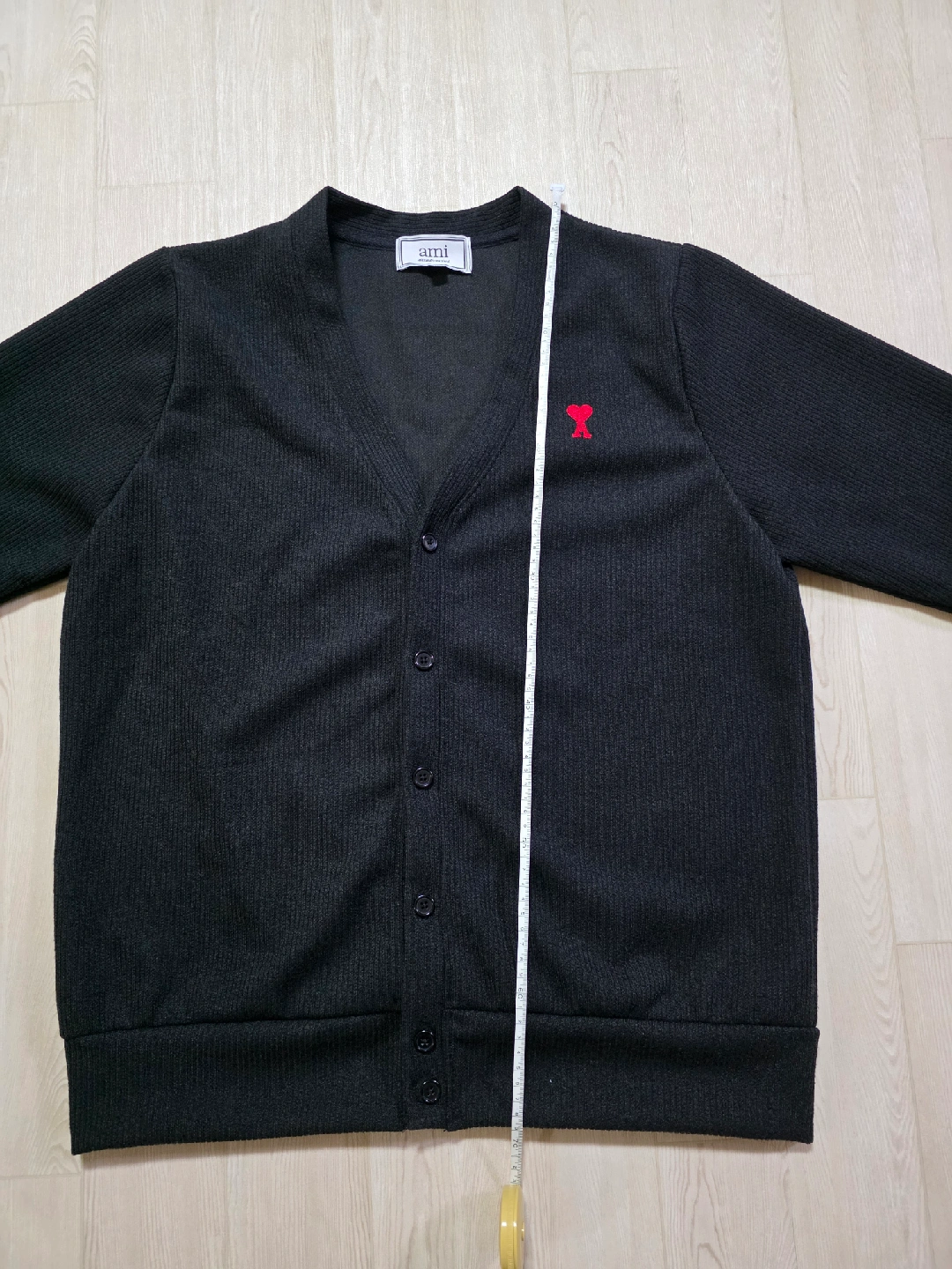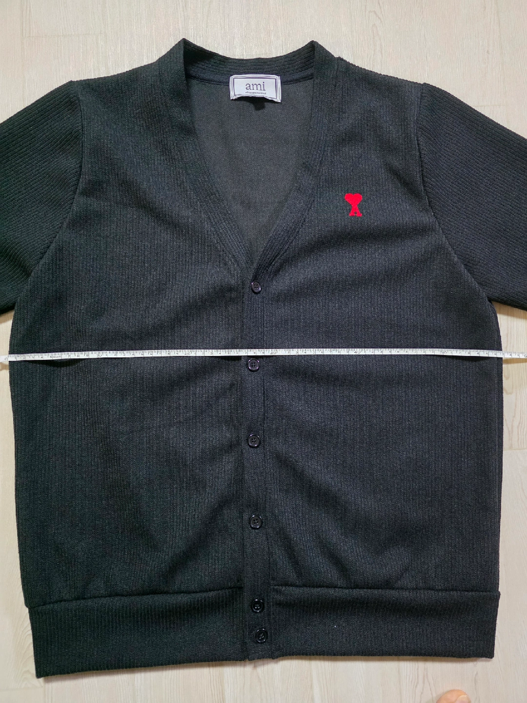 아미 가디건 판매 합니다. 색상 블랙 사이즈는 사진에 줄자눈끔 확인해주세요. 제가 평소 105입는데 사이즈가 살짝 작더라고요. 여성분 오버핏으로 괜찮을거같아요. 그리고 선물 받은 제품이라 정품 여부는 확실하지 않습니다. 다만 개인적인 판단으로 퀄리티는 정품 같진 않아서 저렴하게 판매 합니다. 세탁1회에 한번 입었습니다.