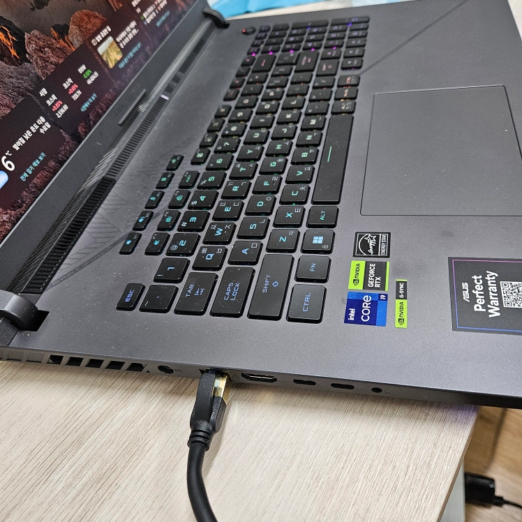 상품명 : 에이수스 2024 ROG 스트릭스 G18코어 사양 : 19 인텔 14세대 지포스 RTX 4070, freeDos 32GB, Free DOS, G814JIR-N6079 18인치 / 24ohz / QHD i9-13980HX 램 32G(기본16+추가16) SSD PCIE 1TB 충전기 포함 구매 : 2024년 1월경 사용감 : 사무실내에서 쿨러 및 시즈모드로 사용하여 깨끗합니다. 직거래 장소 : 서울 교대역 / 강남역 / 남부터미널역 부근에서 거래하겠습니다. 거래시 : 박스포장하여 드리며, 원하신다면 현재 쓰고있는 무선 마우스 및 인터넷선 드리겠습니다. 특이사항 : 없습니다 감사합니다.