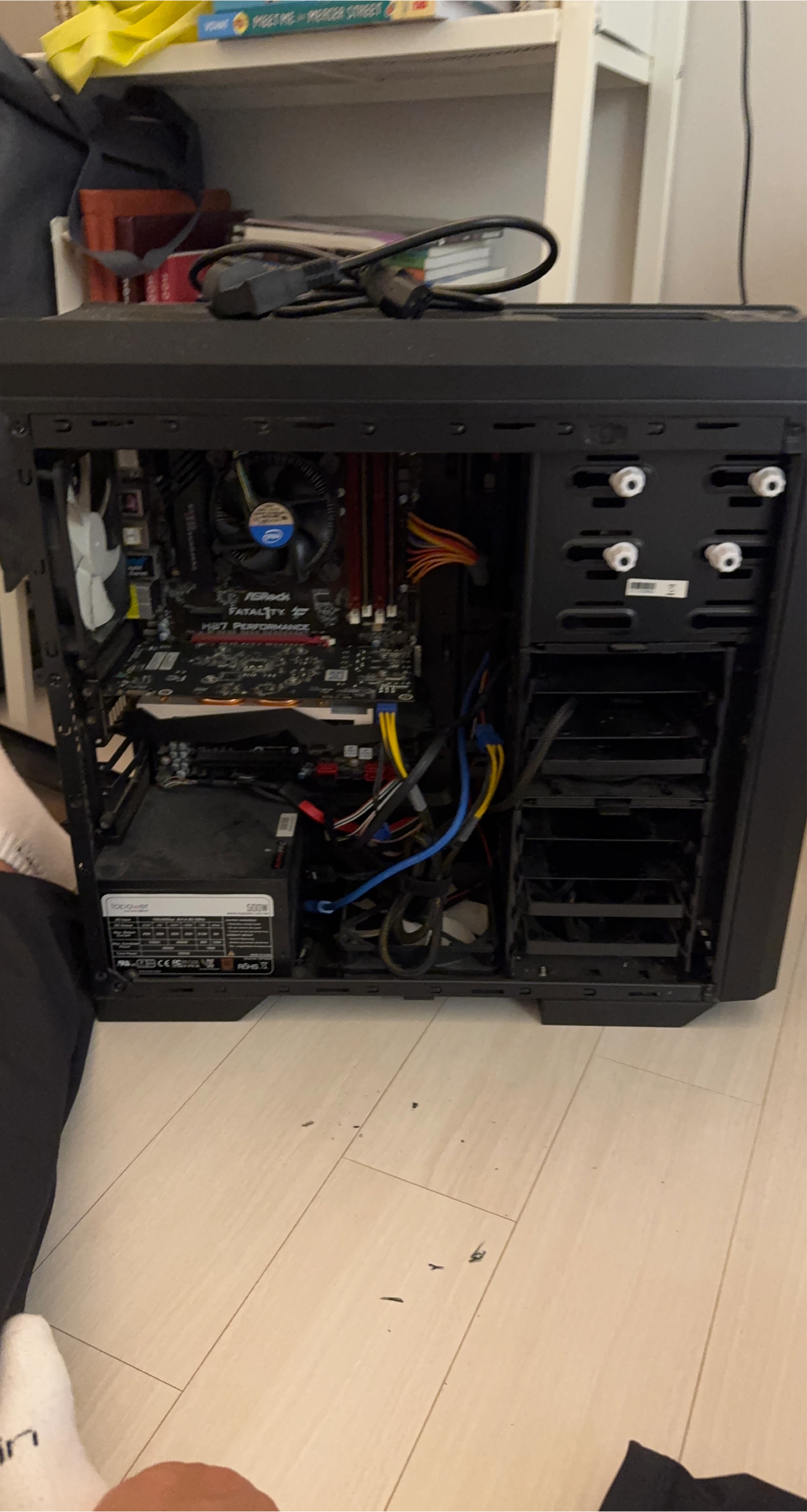 데스크탑 본체 사용 안한지 오래 방치되었습니다 감안하고 구매 해주세요 cpu는 하스웰 이었던거 같구요 그래픽카드는 지포스 960 이었던거 같습니다. 메모리는 삼성꺼 4기가 두개 껴져 있습니다. 하드디스크나 ssd 같은 저장장치는 없습니다 그래서 못켜보겠네요 분해해서 사용하실 분들 사가세요