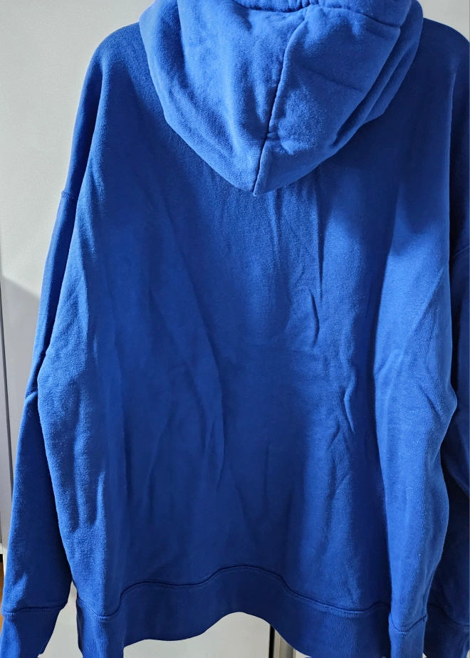 로얄 블루 컬러로 안감 기모이고 가볍고 따뜻하게 입기 좋습니다. 라벨 사이즈 M 세미오버핏 느낌이라 하나 작은거 사서 적당한핏 좋았습니 다. 100-105 입으시는분 추천 드려요. 총장 74 어깨 팔기장 여유 있고요. 로고 패치 아니고 전체 자수로고로 고급 스럽습니다. 상태 매우 좋고요 컬러가 마음에 들어 구매했던 후드티 입니다. #교환환불불가 ##교대역 #서초동