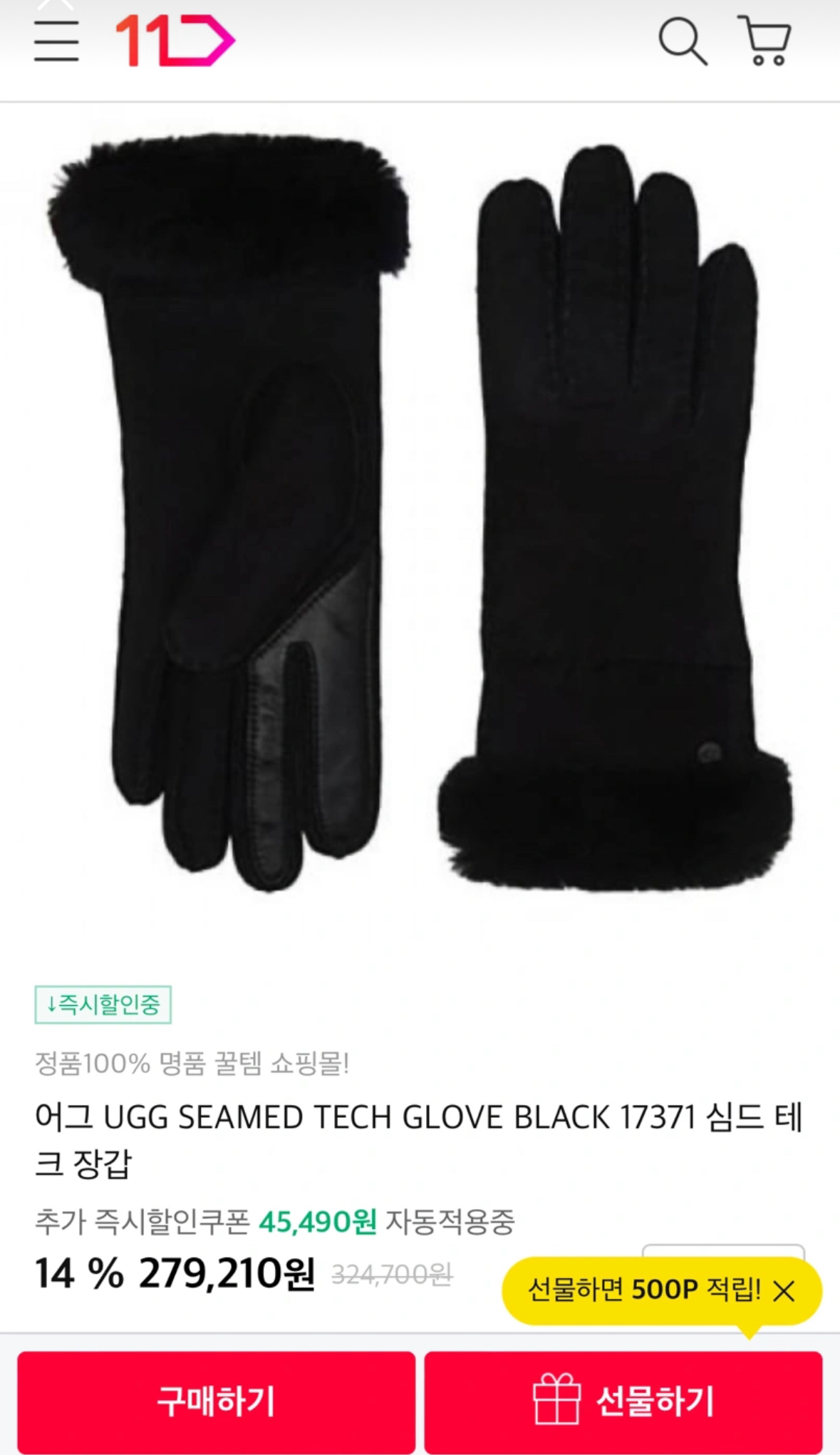 (정품) 여성 UGG 스마트폰 테크 터치 장갑