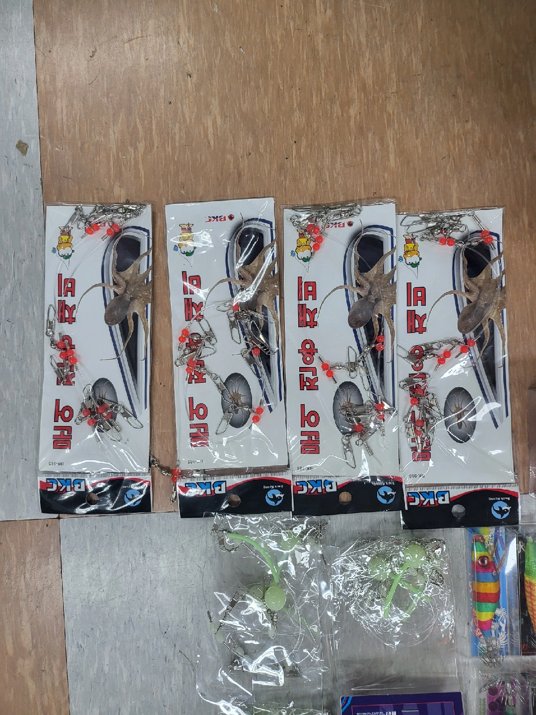 팔수술로 낚시를접게되어 일괄판매합니다 문어채비사용안함ㅡ20개 쭈갑채비사용안함ㅡ21개 쭈구미애자사용안함 ㅡ12개 쭈꾸미애기사용안함ㅡ20개 애기사용한것ㅡ40개 애기박스ㅡ1개
