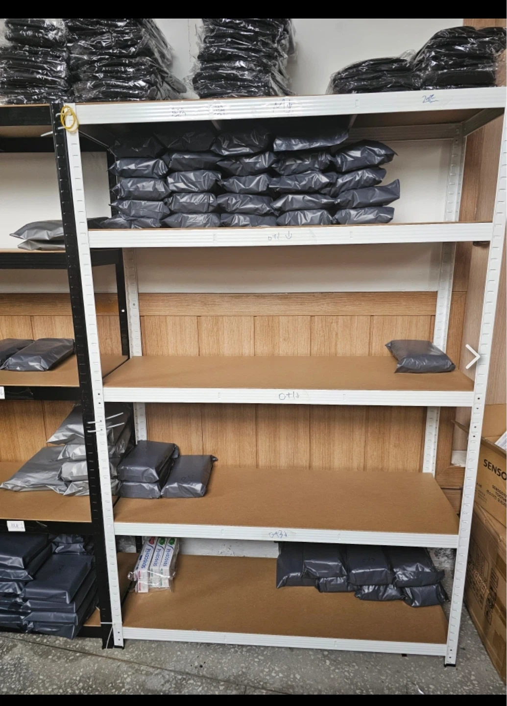 안녕하세요! 깔끔하게 수납 도와줄 무볼트 철제 앵글 선반 5단이에요. 전 색상·전 사이즈 모두 보유했고, 모두 새상품(박스포장) 입니다. ✨ ✅ 옵션 • 색상: 블랙 / 화이트 (프레임 & 선반 동일 스타일) • 규격(가로×세로×높이, mm / 모두 5단·선반 포함) • 600×400×1800 • 700×400×1800 • 800×400×1800 • 900×400×1800 —————————-각 45,000원———————— • 1000×400×1800 • 1100×400×1800 • 1200×400×1800 —————————-각 48,000원———————— 사진 속 진열 샷은 1200×400×1800 사이즈예요 🙂 📦 상태 & 특징 • 완전 새상품 / 박스 포장 그대로 • 무볼트 구조라 톡톡 끼우면 조립완료입니다 • 경량랙이라 가정용·사무용 수납에 좋아요 • 하중: 선반 1단당 50kg 이하 권장 (아주 무거운 공구·엔진류 적재는 ❌) 🚚 수령/배송 • 사무실 창고가 멀리있어요🥲 • 택배발송 가능하고 배송비 포함입니다 (도서산간은 소액 추가될 수 있어요) 작은 정리부터 이사·창고 정리까지, 한 번 들이면 만족도 높은 아이템이에요. 문의 언제든 환영하구요 귀여운 가격에 깔끔한 수납 시작해보세요 🧺✨