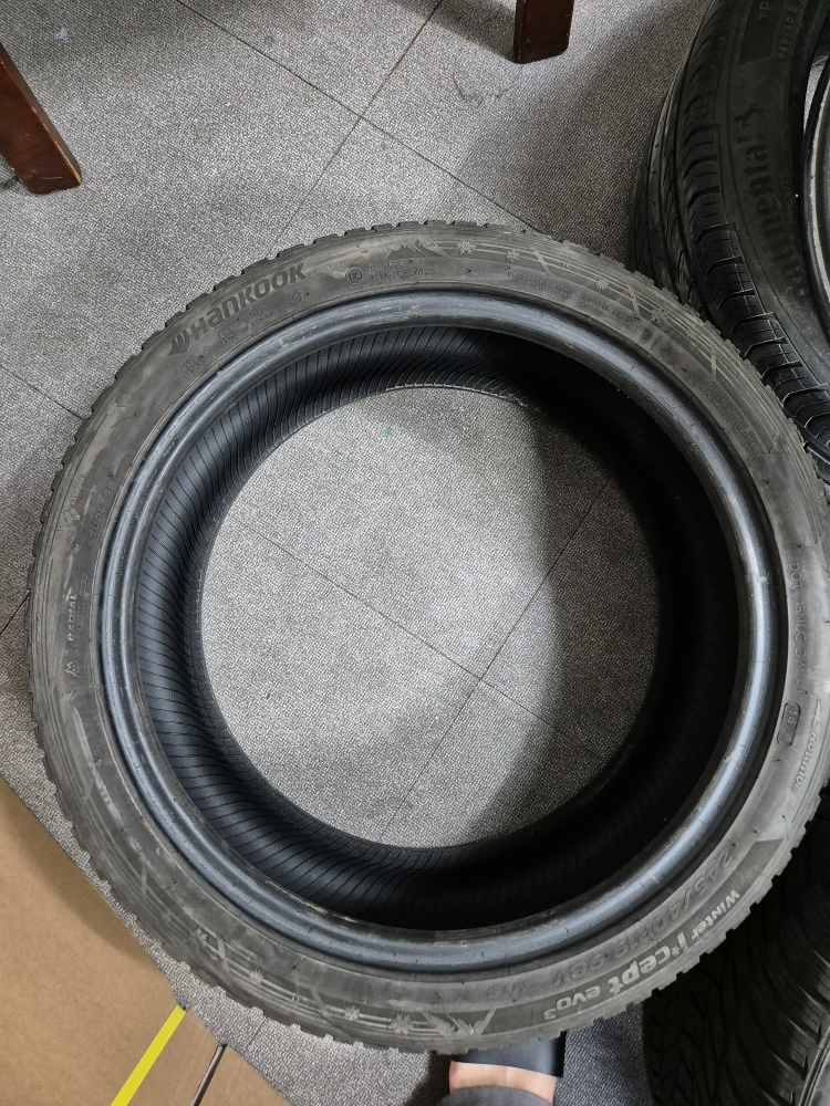 - 판매품: 한국타이어 윈터 아이셉트 에보3 - 제품년식: 2021 - 총 운행거리: 트레드 90%이상 - 제품가격: 28 - 차량사진: 오토뷰 선정 국산 윈터 1대장인 한국타이어 아이셉트 에보3입니다. 벤츠 19인치 휠 차량 대부분에 맞는 245 40 19, 275 35 19사이즈이고 트레드 90%이상있는 거의 새제품입니다. (생산년도 21년 44,45주차) 한대분 다나와 최저가로 70만 초중반대인데, 일괄 28만원에 처분해봅니다. 겨울준비 싸게 미리하실분 가져가세요. 보관은 타이어가게에서 짝당 1.5만원에 해줍니다. 감안해서 가격 더 낮춥니다. 인천에서 직거래 혹은 짝당8천원 화물택배 가능합니다.