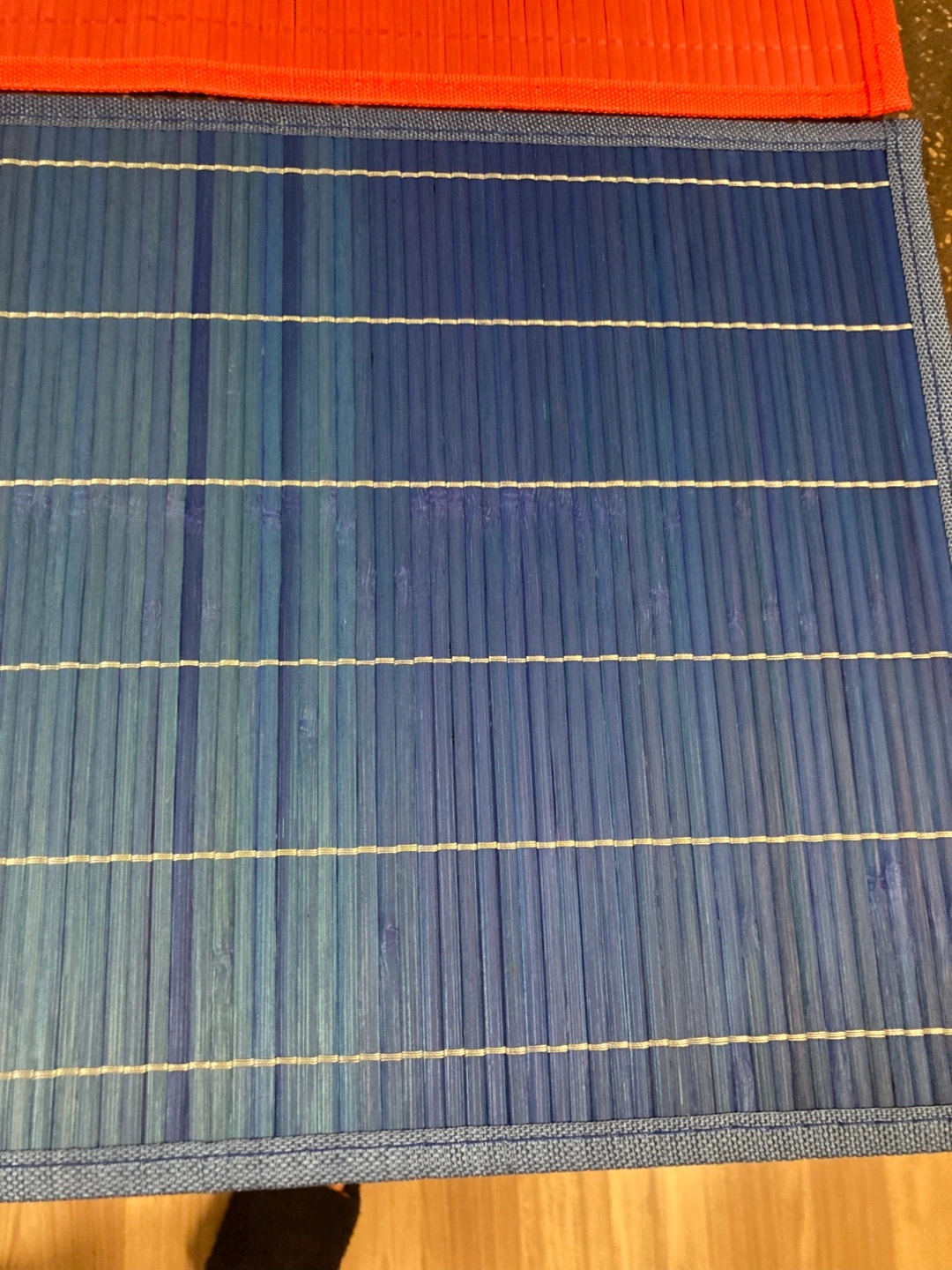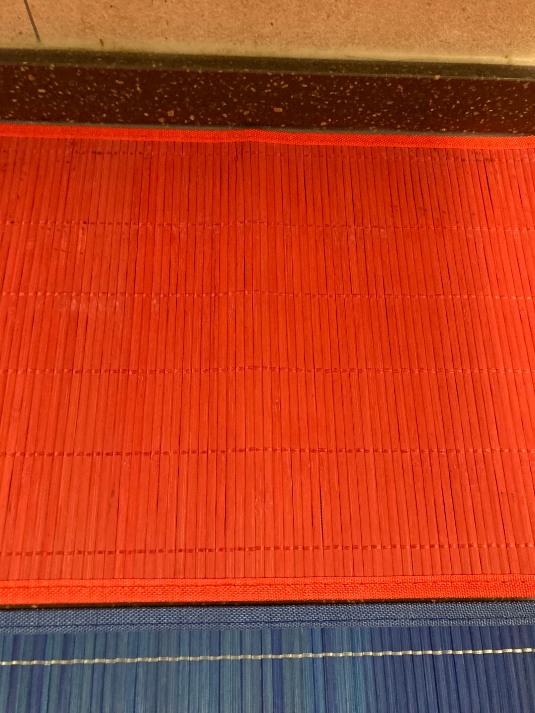 이태리에서 구입한 컬러풀한 대나무 식탁매트 4개 세트에요. 사용하지않고 보관만 했어요 파란매트 컬러가 사진상 흐리게 나왔는데 실제로는 쨍한 블루입니다 44.5 cm x 30 cm 반품/환불 안되는 것 양해 부탁드려요. 서초동 파리크라상 아크로비스타점 입구 직거래 합니다.