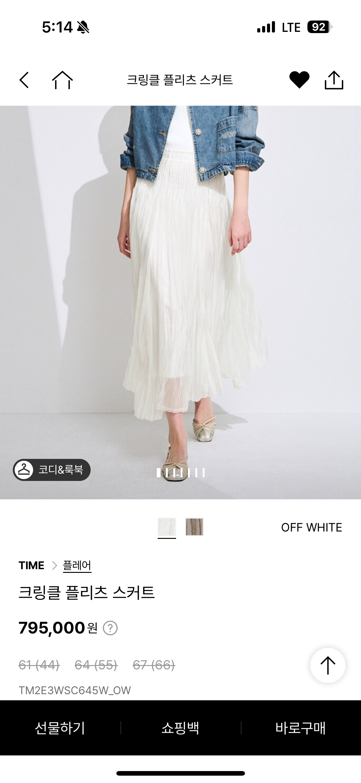 현재 전국 완판인 타임 크링클 플리츠 스커트 66입니다 메인 품번이고 구매 후 시착도 안했으며 택도 그대로 입니다 반품시기를 놓쳐서 내놓습니다 795,000원이지만 배송비 감안해서 790,000원으로 올립니다 안팔리면 입을 생각입니다 반품 환불 불가합니다 강남 잠실 등에서 직거래 및 택배 가능합니다