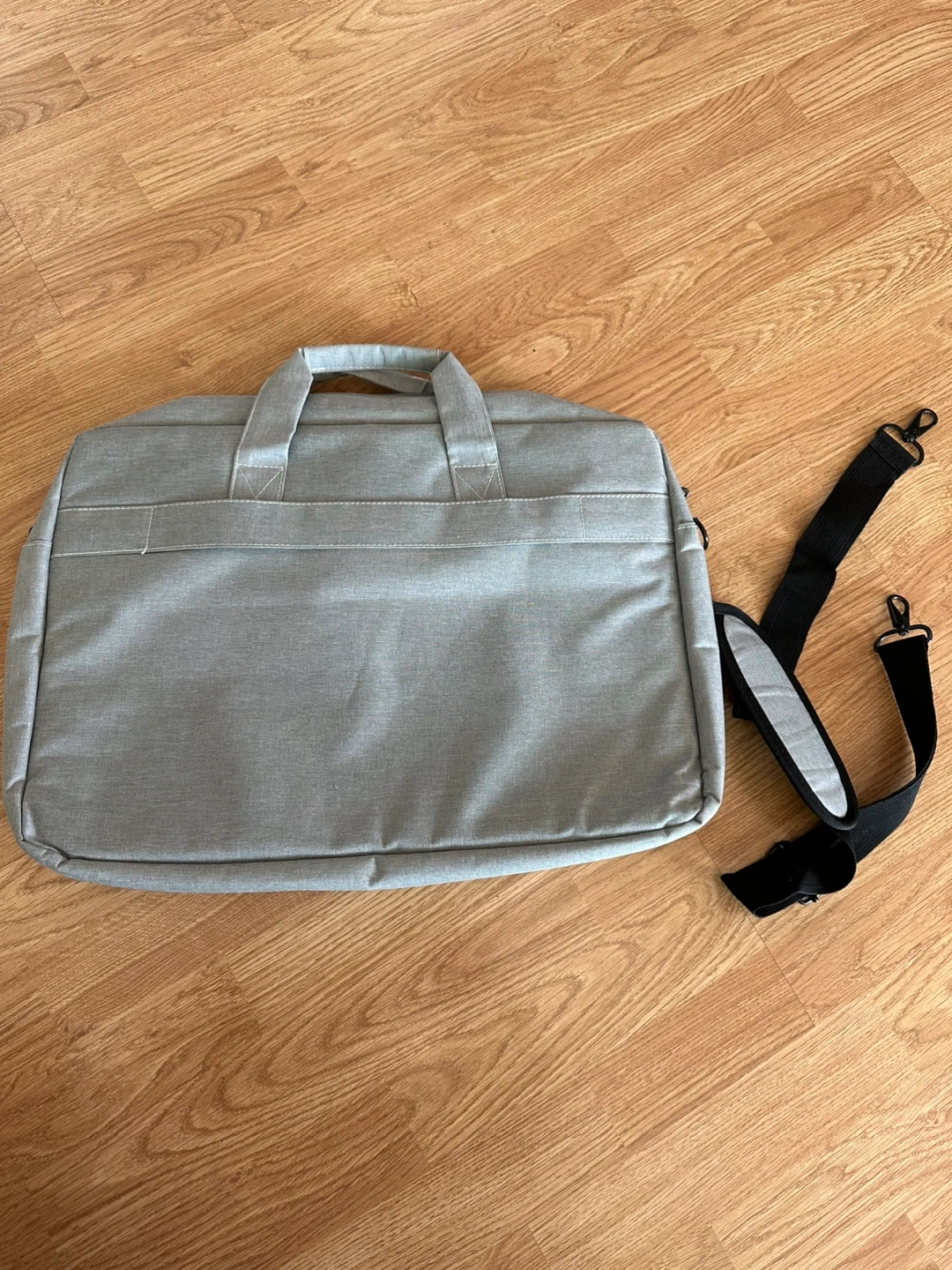회색 노트북 가방입니다 크로스 끈 포함되어 있습니다 노트북 수납에 적합하며, 상태는 양호합니다 사이즈는 50*38 정도 입니다 수납 공간이 안밖으로 많으며 안쪽에 보호 패드가 있어 노트북이 안전합니다 사용감은 거의 없습니다 중고물품거래 특성상 교환반품환불이 불가 하오니 신중한 구매 부탁 드립니다