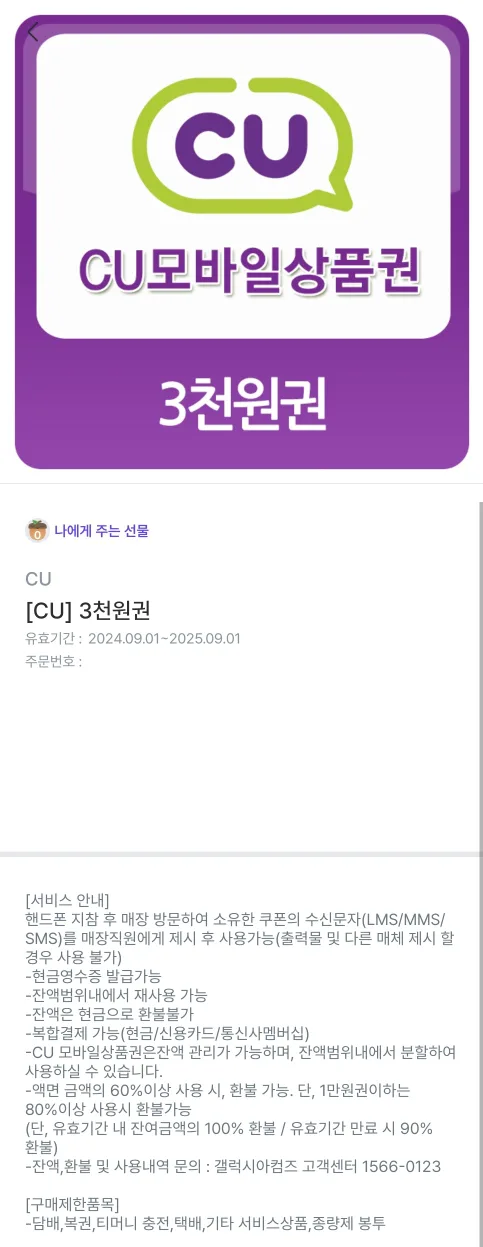 (~25.9.1) CU 편의점 3천원 기프티콘 상품권 금액권2,700원