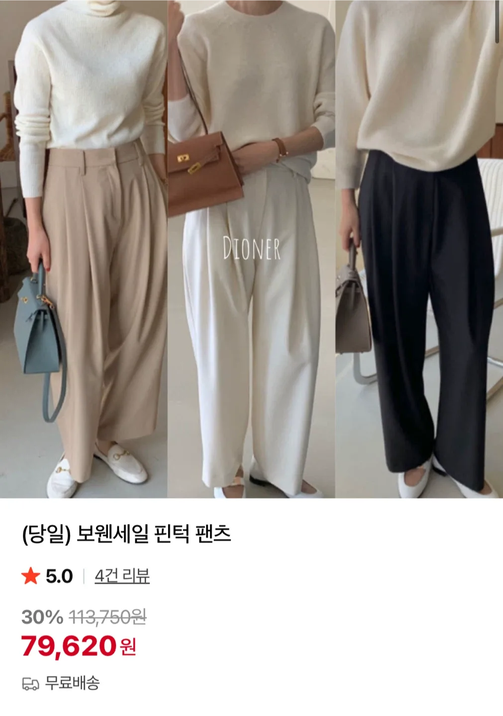(새상품) 보웬 Bowen 크림 색상 팬츠 8만원대38,000원