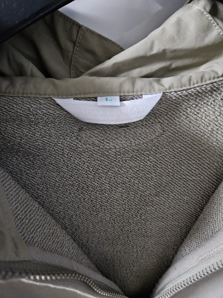 애프터프레이 후드 집업과 조거 팬츠 셋업 상의 L 오버핏으로 (총장 약 72cm/ 가슴 67-8cm) 105-110 까지 넉넉합니다. 전체적으로 올리브 카키색이 섞인 디자인으로, 면과 폴리 패널 디자인이 들어가 있습니다. 사용감이 거의 없고 마지막 이미지에 모자 부분 작은 스크레치 외에는 문제 없습니다. 후드 집업은 지퍼 여밈 방식이며, 조거 팬츠 Free 사이즈로 허리 밴딩과 스트링으로 조절 가능합니다 (총장 100cm/허리 약 31cm) 허리 30-33 까지 추천 드립니다 안감은 프렌치테리 소재로 편합니다. *같이 하시면 12 따로 거래 하실경우는 각 7만원 #교환환불불가 #서초동 #교대역