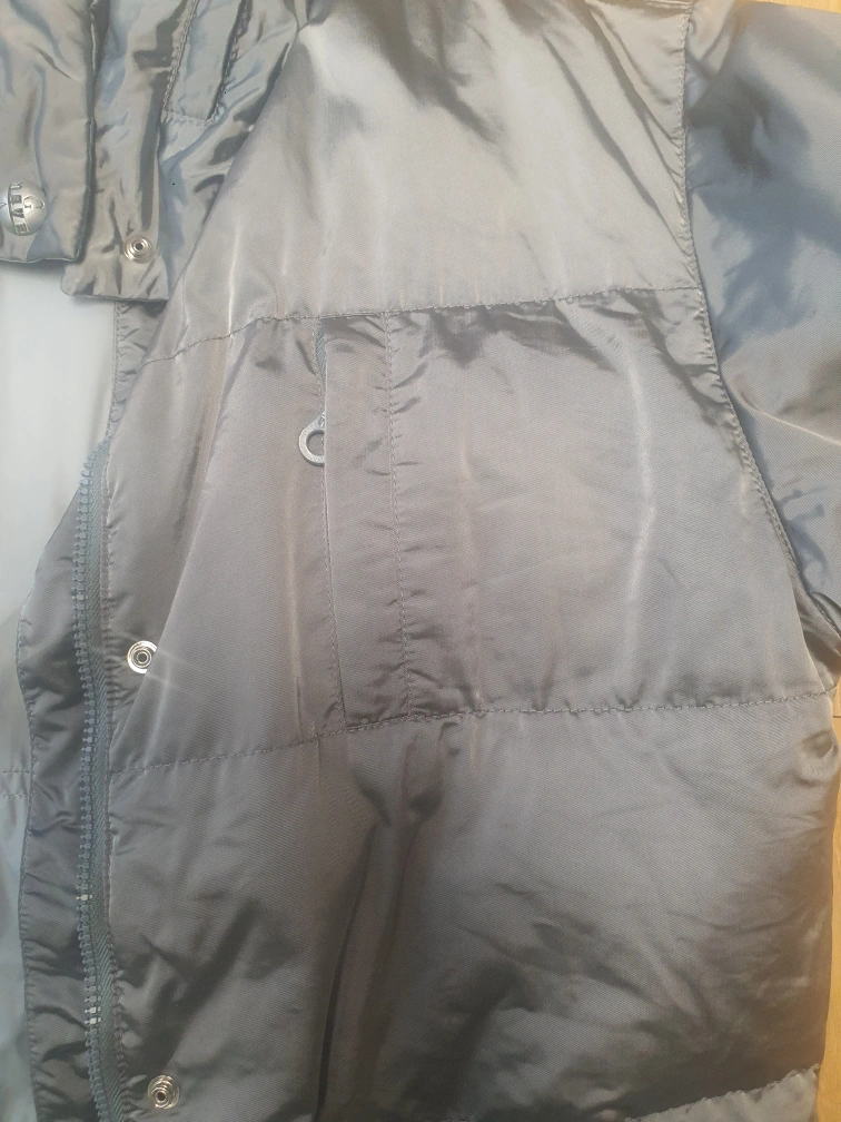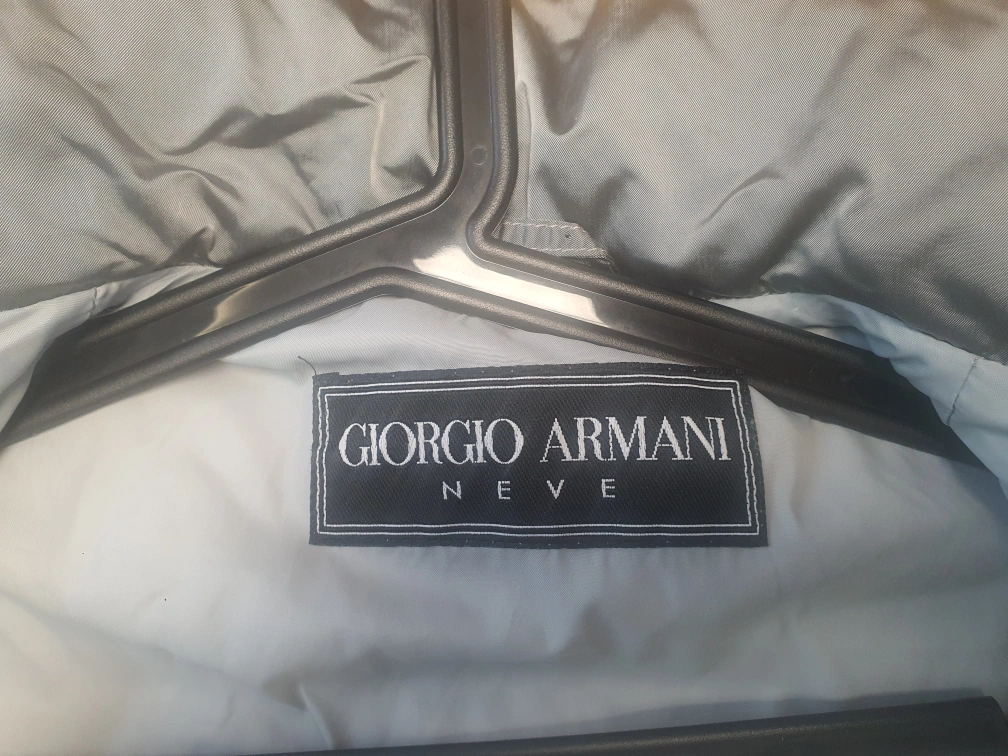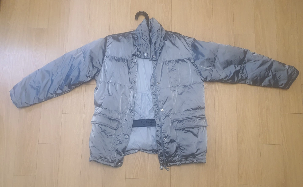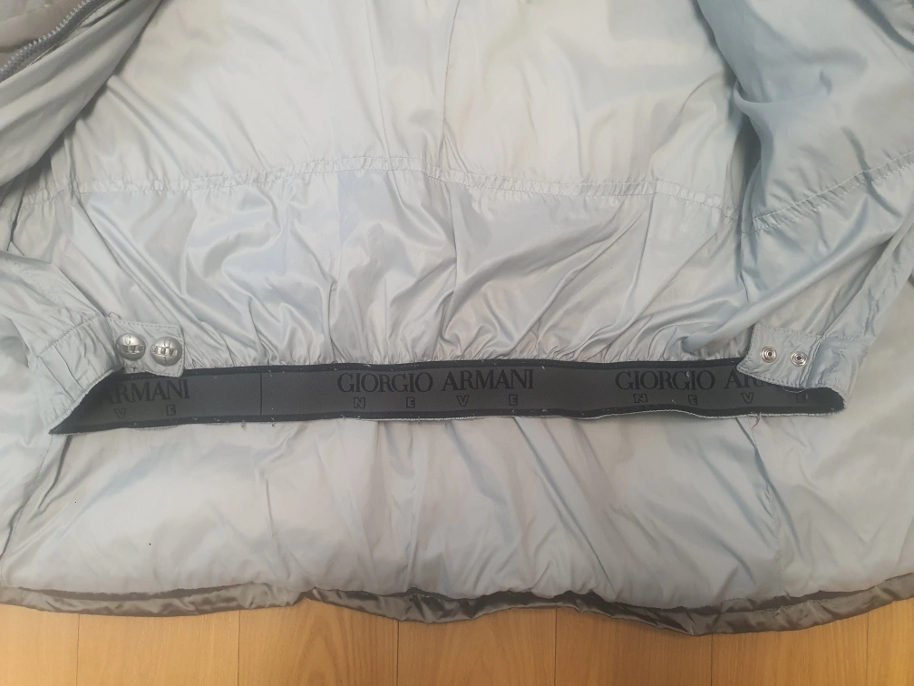 Giorgio Armani puffer jacket (unisex) ~~ Used but in very good condition. I have used it and it is very comfortable. Bought in Europe several years ago ~~ Metallic (slightly shinny) silver colour ~~ Pick up in Junggok-dong or delivery possible ~~