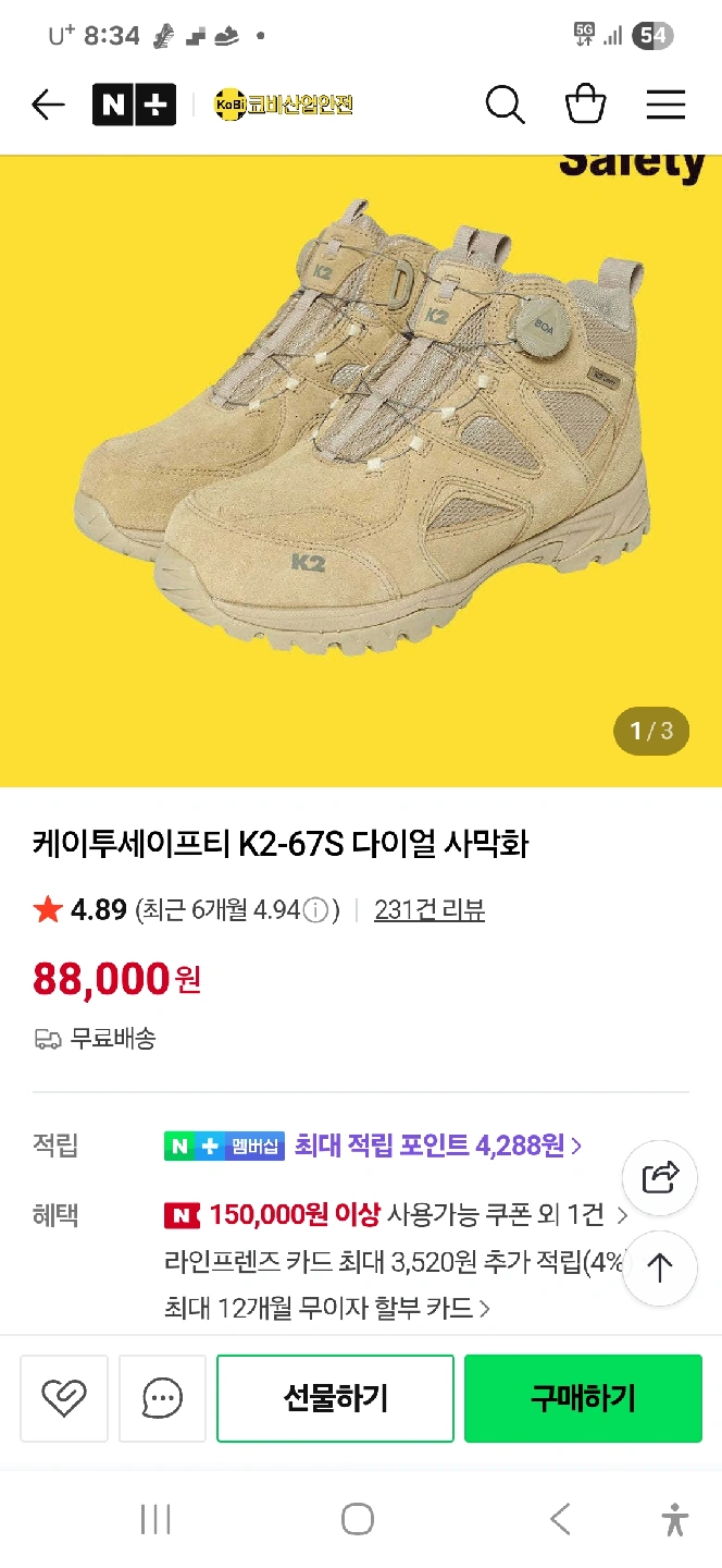 K2 Safety의 K2-67S 다이얼 안전화 사막화 색상입니다 다이얼로 편하게 조절 가능합니다 새 상품입니다