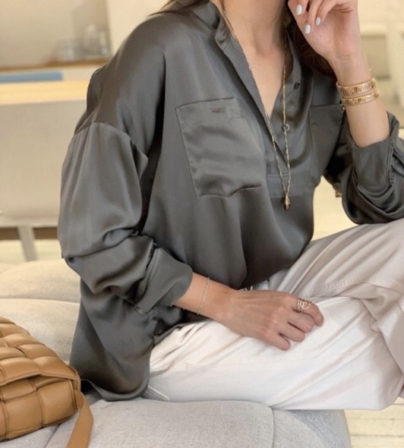 2020년 5월에 소윰에서 진행했던 새틴 실크 블라우스입니다. 색상은 인기 정말 많았던 khaki (카키)구여. 한 번 시착만 했던 새제품입니다. 정말 너무 고급스러워요! 여유롭게 입는거 좋아하시면 55반이신 분도 좋고 66에서 66반까지도 잘 맞을 것 같아요. 전 사이즈 미스로 내놓습니다…ㅜ.ㅜ 울고 싶어요.. 다양한 착샷 및 자세한 내용은 블로그 내용을 읽어주시기 바랍니다. 소윰 제품을 잘 아시는 분이 가져갔으면 더 좋을 것 같아요. https://m.blog.naver.com/soyoom_korea/221960989772 구입가가 27.8만원이었습니다. 100% 실크 블라우스를 이 가격에 가져가시는 것은 득템! 삼풍아파트쪽에서 직거래 원하지만 CU택배도 가능해요. 감사합니다. 감사합니다!!