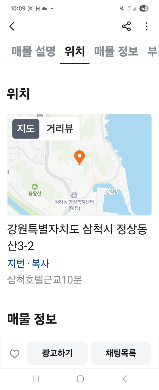 - 정라의용소방대5분거리기타매매 3,500364.6평확인 매물정상동··채팅 수13좋아요 수12