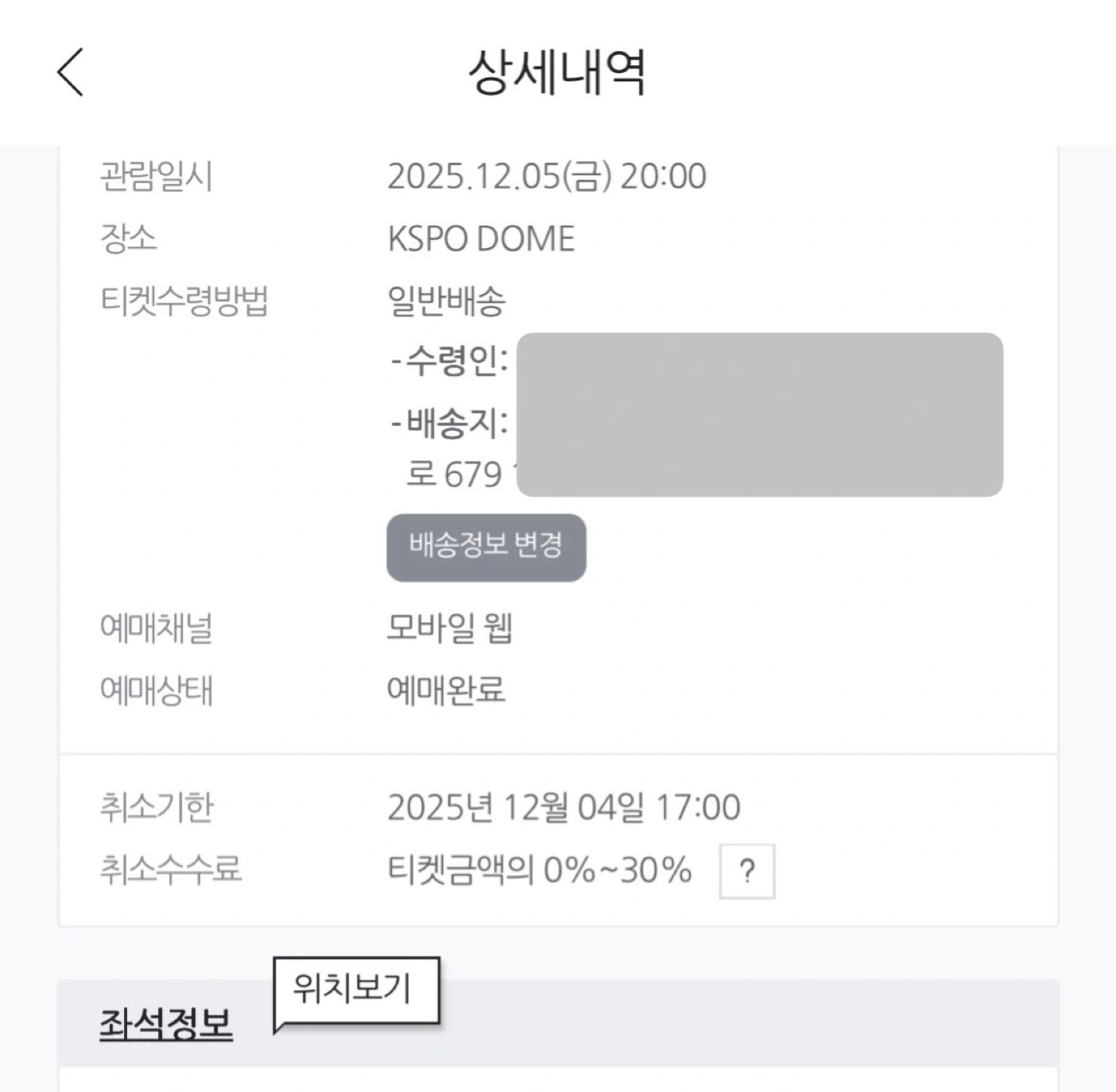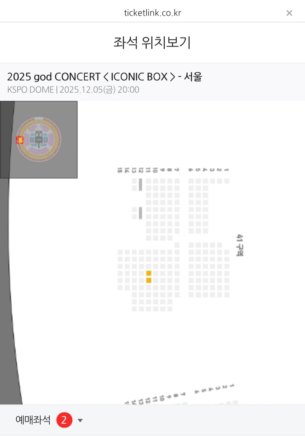2025 god 서울 콘서트 티켓 - 관람일시: 2025년 12월 5일(금) 20:00 - 장소: KSPO DOME - 티켓수령방법: 일반배송 - 예매상태: 예매완료 R석41구역11열 두자리 연석 가격입니다. 배송지 변경으로 보내드려요. 취소x