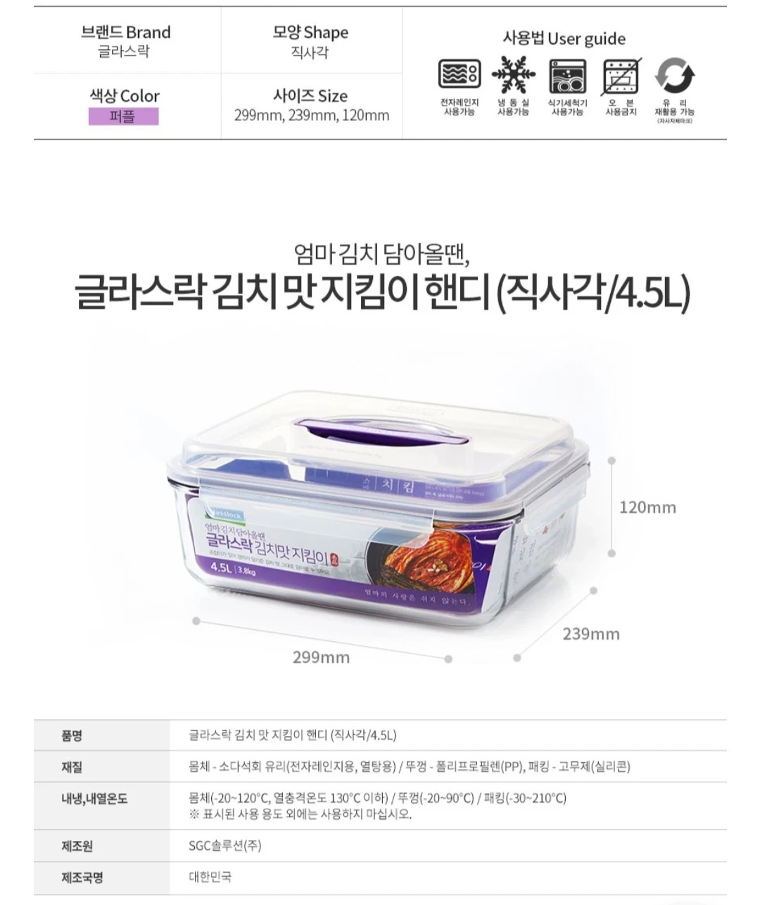 배송 받아보니 사이즈 미스여서 내놓아요 김치맛지킴이라 다른 글라스락보다 밀폐가 더 좋은것 같아요 299×239×120 택배X 오전10시 ~오후7시 직거래 대방할인마트 앞
