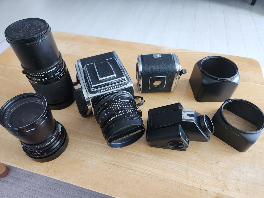 핫셀블라드 503cx 80m.50m.250m.커버2개.프리즘.A12.A24 작품활동하면서 이상 없이 작동 잘됐고 수리점에서 렌즈바디 청소와 점검 완료했습니다
