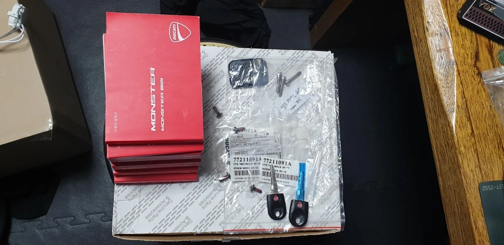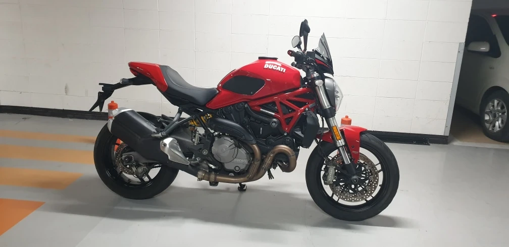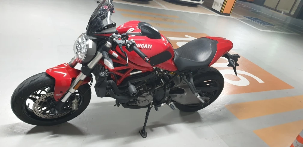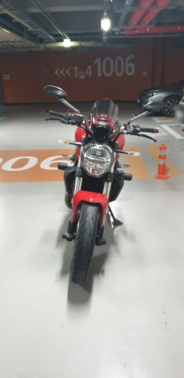 4월 말일까지 안 팔리면 그냥 재등록해서 탈 예정입니다. 2. 제작사 , 모델명 : 두카티 몬스터 821 3. 배기량 : 821 4. 튜닝여부 : 큰 튜닝은 없습니다. 탱크, 캐노피, 전면머드가드(빨간색), 헤드라이트 PPF 필름 작업 순정 퀵시프트 순정 브라켓+퓨익 윈드스크린 에보텍 프레임슬라이더 에보텍 휠슬라이더 에보텍 라디에이터가드 에보텍 엔진가드 알리발 밸런스, 브레이크뚜껑, 스탠드 확장 5. 사고나 슬립혹은 도색여부 : 전주인 우꿍 1회로 알고 있습니다. 6. 제작연식 : 2018 7. 적산거리 : 13,646km 8. 등록서류 유 / 무 (3장) : 폐지 완료, 3장 구비 9. 구조 변경 및 환경 검사 유 / 무 : 구변 없음, 2023년 환검 통과 10. 판매 희망가격 : 790만 11. 흥정가능? (불가능?) 표시 (자유) : 추가금 주고 받고 대차 가능? (자유) : 12. 판매자에 사용할 이름 (본명아니어도 됨) : 13. 연락처 , 연락가능시각 : 공1공 8265 8II8, 낮 시간에 문자 먼저 주세요. ★ 경고! 안심번호도 선불폰 조회되니 조회후 거래 , 채팅으로만 거래하려는 사람 운영진에 신고! (사기조심) 14. 판매물건 볼수있는 지역 : 세종시 아름동 즐판 기원합니다! 이제 물건 설명해주시고 사진 올려주세요 -> 제가 2대주이며, 정확히 기억은 안 납니다만 500km 쯤에서 데려왔던 것 같습니다. 흔히 말하는 병적관리 수준은 아닙니다. 주기적으로 센터에서 오일, 필터, 냉각수 교체 정도 했구요, 작년 오일교환 때 브레이크 관련 리콜 있었다고 해서 작업 받았습니다. 개인적으로 시끄러운 것을 좋아하지 않아 떼르 같은 머플러 작업 안하고 가변배기 그대로 살려져 있는 순정 그대로구요. 대신 PPF필름이 그정도 가치는 한다고 봅니다. 전주인 우꿍에 생긴 머플러 상처와 우측 에보텍 프레임 슬라이더에 생긴 찍힘은 사진 첨부 했구요 캐노피에 생긴 상처 2개는 PPF가 대신 막아준 상처 입니다만, 왼쪽은 승차시 신발에, 오른쪽은 돌빵이었던 것 같습니다. 그 외적 부분에 제가 알기로 큰 문제는 없었던 것 같네요. 오일은 교체하시고 시즌 시작하셔야 하구요, 타이어는 뒷 타이어는 꽤 쓰셔도 되고, 앞 타이어는 좀 타시다 교체해야 하실 것 같네요. 패드는 지금까지 교체하지 않았습니다만, 제가 주행 시 브레이크를 그다지 잡지 않는 습관이 있어 제가 보기에도 꽤 남은 상태고, 체인, 스프로켓류는 제가 잘 볼줄은 모르는데, 작년 센터 방문 때 직원분이 키로수에 비해 상당히 양호하다고 말씀해 주셨습니다. 아참 탱크백, 브라켓은 탱크백을 실제로 계속 사용해 와서 상태가 매우 좋지는 않은데요, 원하시면 드리고, 원치 않으시면 브라켓 해체하고 순정볼트로 교체해 드리겠습니다. 주 사용 목적은 편도 25km 정도 되는 장거리 출퇴근용이었는데요, 살짝 더 가벼운 물건으로 바꿔보려고 합니다. 지루한 출퇴근길을 그나마 즐겁게 나갈 수 있게 해 준 녀석이었지만, 몸이 좀더 편한걸 찾네요;; 좋은 주인 찾길 바랍니다.