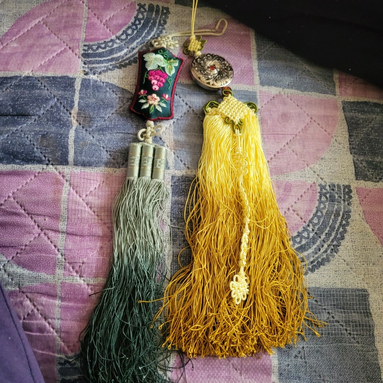 모우던것 아끼고 하던것 노란숫실 네모난노리게 8000 옥노리개 개당 6000 득뎀하세요