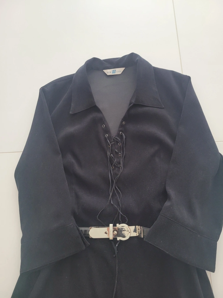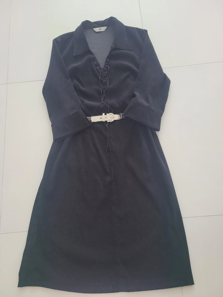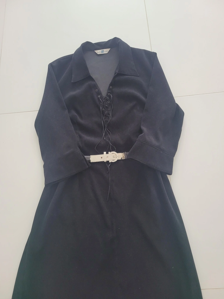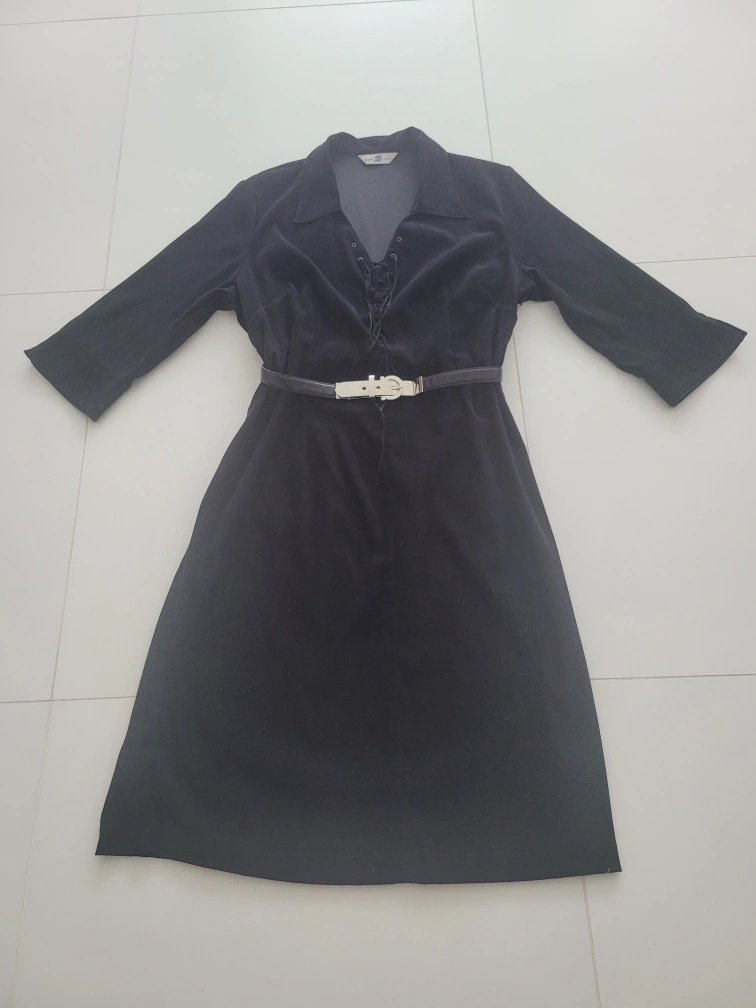 유럽 여행에서 샀던 제품입니다(브랜드: 뉴룩) 심플하나 입으면 세련된 스타일이고 톡톡한 소재로 재질이 좋고 네크라인이 브이라인이고 이뻐서 얼굴도 작아보이고 날씬해 보입니다 격이 있으나 입으면 편안한 스타일입니다 벨트는 제 것을 코디한것이고 안해도되는 스타일입니다 쟈켓에도 잘 어울리고 가디건에도 잘 어울립니다 속에 흰셔츠를 받쳐입어도 다른 느낌으로 코디 가능합니다 구매가격 14만원정도였습니다 총창 103cm 어깨선부터 소매끝 44cm 가슴둘레 허리둘레 단면 44cm 55~66반까지도 가능합니다