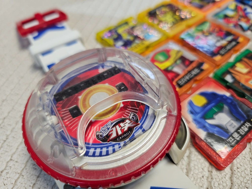 카봇 좋아하는 아이들에겐 시계는 필수템이죠~ 사용감 적어요 깨끗합니다~ 카봇 시계 ver2 와 카드 12종 입니다. 일괄판매해요~ 카드 종류는 사진 참고바랍니다.