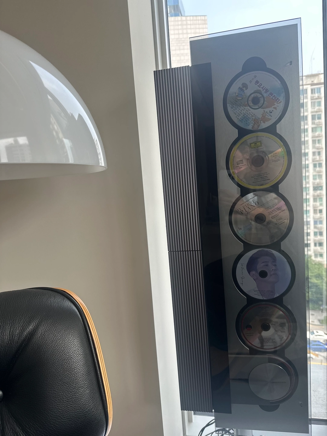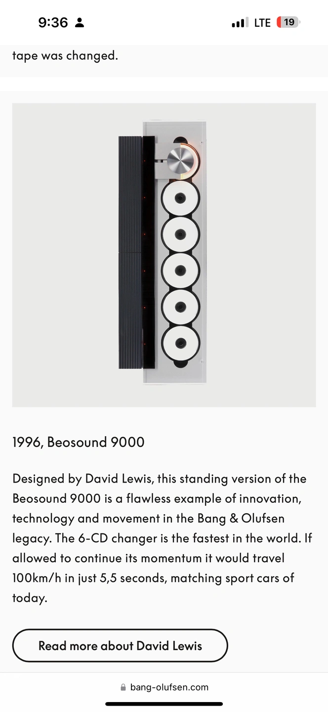 뱅앤 올룹슨 베오 9000 1996 오리지널 디자인 입니다. 모마 전시 동일 디자인이며, 디자인의 거장 데이비드 루이스 의 작품입니다. 최근 뱅앤올룹슨에서 limited edition A recreated classic 으로 유럽 미국 캐나다 한정 이 디자인 다시 출시 하였죠. 리미티드 세일가는 $55,000 로 한화 7500만원 대 후반입니다. 하지만 새제품은 오리지널 만큼의 디자인적 포스는 품고 있지 않아, 베오 9000은 이제는 미술품으로 컬렉 하시는 것이 맞다 이야기가 나올 정도 입니다. 처음 유럽에서 컬랙 구매 하였으며 현재도 상태는 최상이며, 플레이해서 듣고 있습니다. 보고만있어도 정~말 아름답습니다. 스탠딩으로 또는 벽에 설치 하실 수 있고, 꼭 관심있는 분만 챗주새요. 이런 작동 상태 및 컨디션은 정말 구하기 힘들어요.