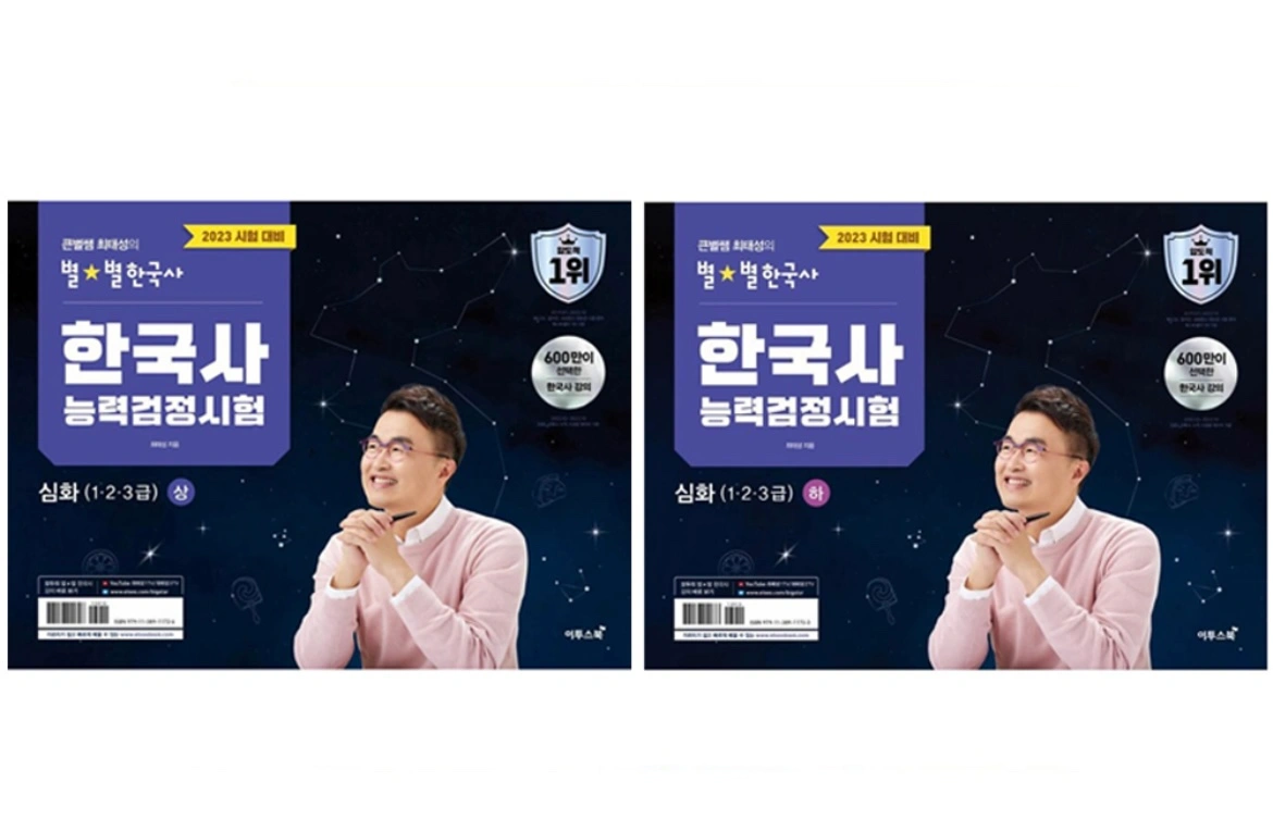 완전 새 교제입니다. 2022 큰별쌤 최태성의 별별한국사 기출 500제 한국사능력검정시험 심화 2023 큰별쌤 최태성의 별별한국사 한국사능력검정시험 심화(1 2 3 급) 상 + 하 세트 총 세권 합쳐서 삼만원입니다