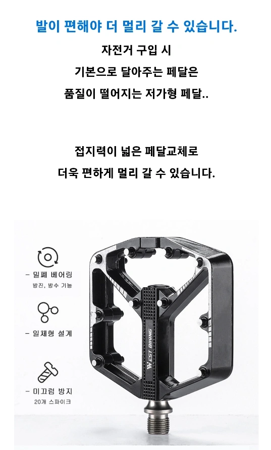 웨스트바이킹 3베어링 평페달 판매합니다. 듀얼 베어링과 급이 다릅니다. 바닥 접지면이 넓어 발 미끄러짐 없이 발에 붙어 다니는 페달링을 경험하실 수 있습니다. 1주일 장착후 사정상 착탈식으로 기변하면서 판매합니다. 구리스 닦지않고 보관중이라 그대로 장착하셔도 될거같습니다 순정 플라스틱 페달 사용중이시면 저렴하게 교체할 수 있는 기회입니다. 가격내림 없습니다 거래완료로 바뀌기 전엔 판매중입니다 관심있는 분 연락주세요