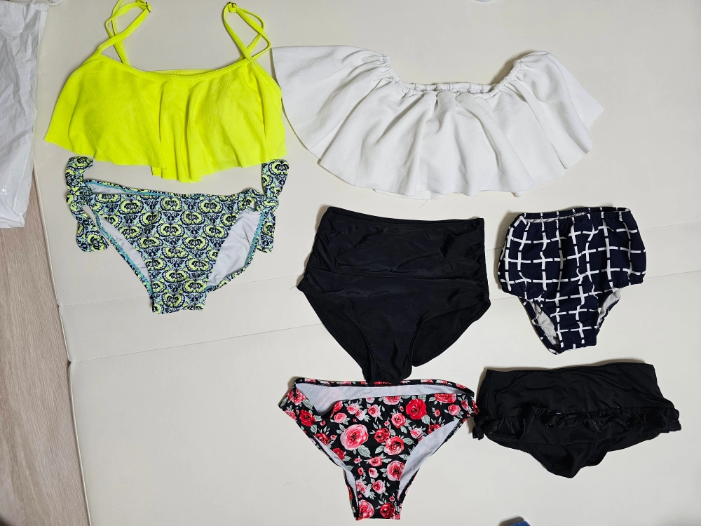 세교동 아니고 고덕입니다 1번 비키니 6,000원 2번 비키니 상의+팬티 4개 6,000원 따로 구매하셔도 되고 일괄하시면 10,000원에 드릴게요 상의 44~44반, 하의 26~27사이즈 입으시면 잘 맞으실거에요 저 168에 47~49키로때 입었어요 꽃무 늬 수영복팬티만 새거고 다 1번씩만 입은거라 상태 매우 좋아요! 꼭 구매하실분만 챗 부탁드립니다 중고거래 특성상 교환환불 안되구요 직접 가지러와주셔야해요 당근페이로 선입금해주시면 상세주소 알려드릴게요 문고리거래하겠습니다 고덕호반써밋3차입니다