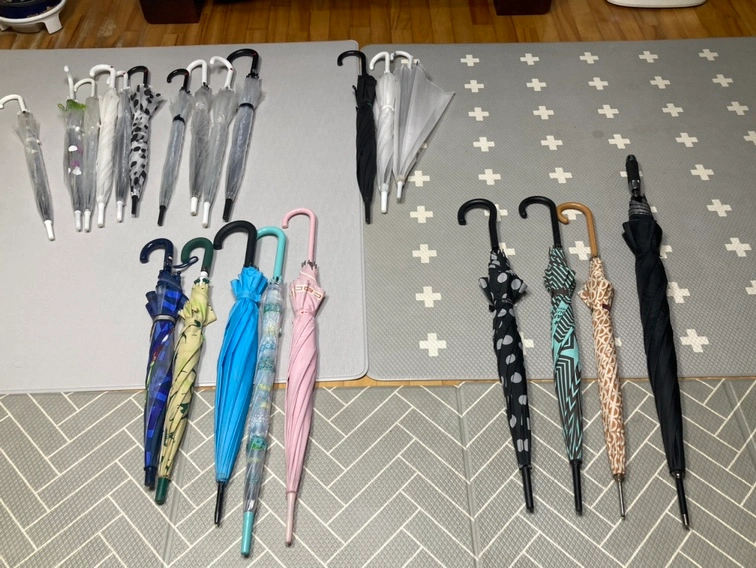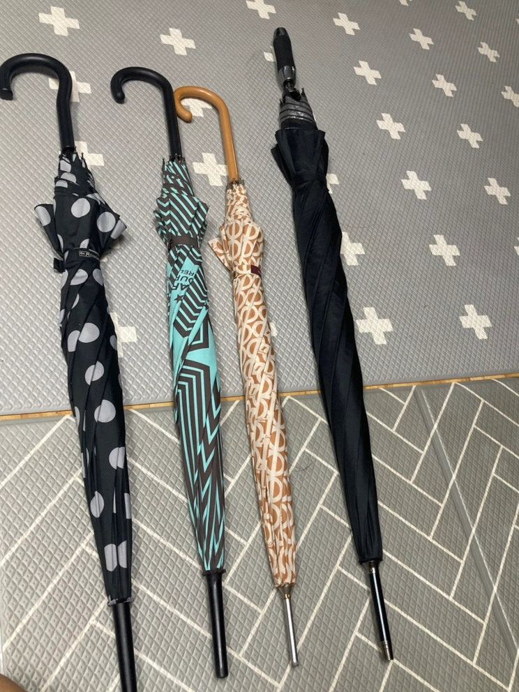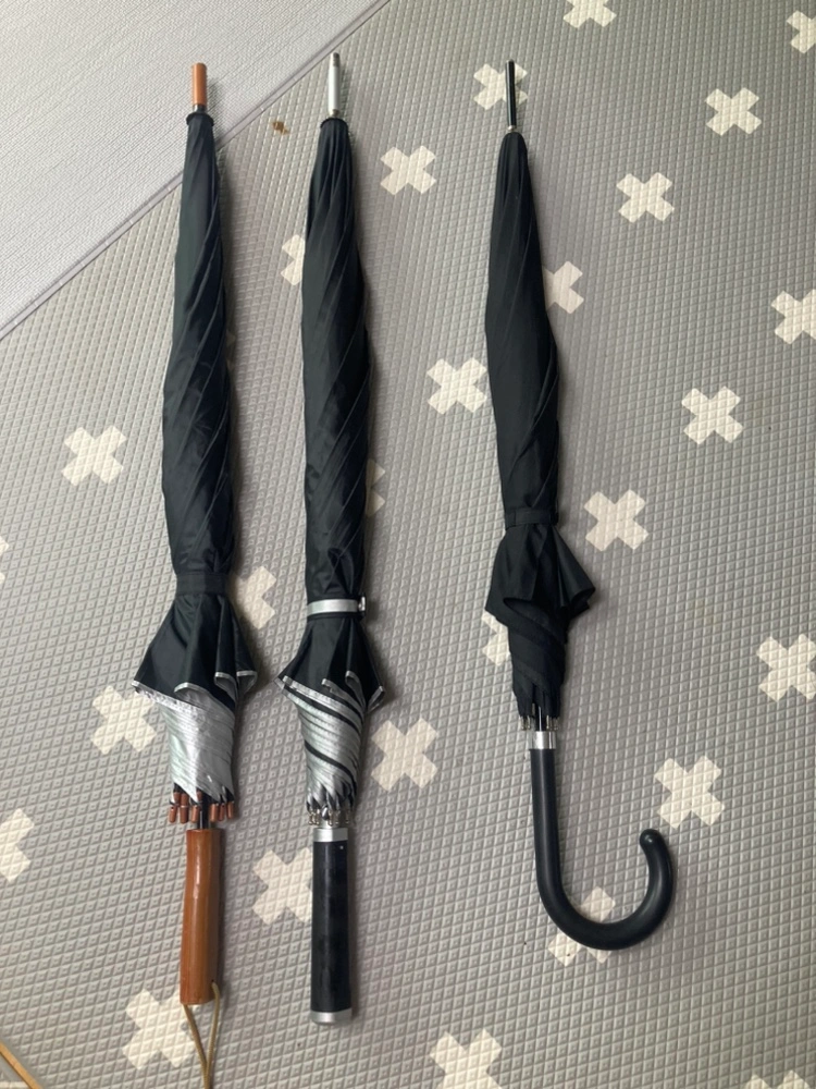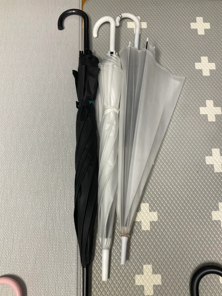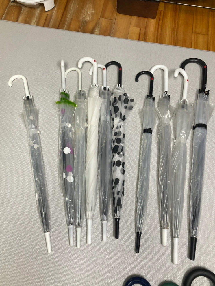 첫번째 사진 : 전체샷 ✅ 두번째 사진 : 개당 천원 - 개인뿐 아니라 가게, 센터, 자영업체 등에서 저렴히 구비해두셔도 좋겠습니다 - 일부 투명우산에 스티커 붙인 것 보입니다 ✅ 세번째 사진 : - 검정색 가장자리쪽 약간 칼로 그어짐 있음 전혀 사용에 지장 없는 수준 - 흰색 우산 둘다 묶는 똑딱핀 없음 - 원하시는 분께 같이 드려요 ✅ 네번째 사진 : 개당 2천원 - 왼쪽 두개 아동용 우산 오른쪽 초록 공룡 우산은 펴보면 우산살이 손찧일 염려 없는 안전 우산살, 단지 핸들 스펀지 조금 까짐 있음 ❌판완❌ 그 옆 파란색 어벤져스 우산 : 우산 묶는 끈 다른걸 꼬매 붙임, 나름 깜쪽 같음 (5번째 사진 참조) 🥕구매가능🥕 - 우측 3개 성인용 우산 (그 중 가운데 투명 포켓몬 우산만 판완) ✅ 여섯번째 사진 중 왼쪽 두개 : 개당 3천원 - 사용감 거의 없는 장우산 : 검정 땡땡이 송월우산, 뷰티포인트우산 ❌판매완료❌ ✅ 여섯번째 사진 중 오른쪽 두개 : 개당 5천원 - 사용감 거의 없는 루이 까또즈 장우산, 세련 그 자체!! ❌판매완료❌ - 골프우산, 초대형 장우산, 새제품이나 보관 문제로 손잡이와 우산 사이 약간 녹슬음 발견, 마지막(8번째) 사진 참조 ♥️ 마지막 9반째 사진 - 우산 3개 추가 - 짱짱하고 하자 없고 상태 최상 - 각각 3천원 🌼 구매시 따로 요청주시면 관심있는 우산의 추가 사진 별도로 보내드립니다, 하나하나 다 올릴 수가 없어서요 직거래/대면/비대면 관악드림타운 북문 (장우산 직거래만 가능합니다) 5513, 관악01, 동작13 버스정거장 바로 옆