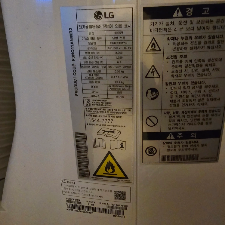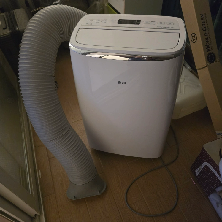 모델명 : PQ08DBWAN 동작 : 정상 작동 구성품 : 설명서 빼고 다 있음(리모컨포함) 단점(파손부위) 1 : 배기호스가 구매후 얼마뒤 구멍을 발견해서 사진과 같이 테이프로 막고 썼습니다 *배기호스는 인터넷으로 LG사이트에서 16000~17000사이로 파네요 단점 2 : 이건 이모델이 그런거 같은데 사진에 보이는 창틀에 끼는것이 고정하면, 중력에 의해 미끄러질때가 있습니다. 이 모델이 새것일때도 그래서 고정후 테입등으로 고정했습니다(솔직후기) 상기이유로 최저가로 처분합니다 작동은 잘 됩니다 (구매시 확인하시고 가져가시면 됩니다.)