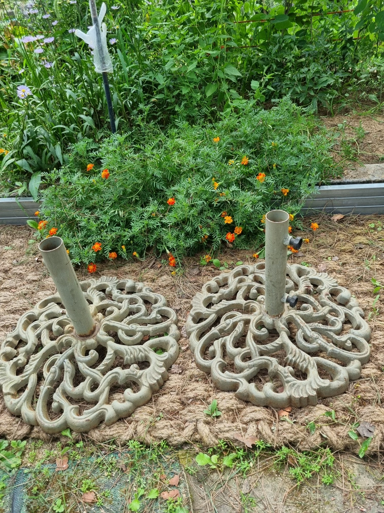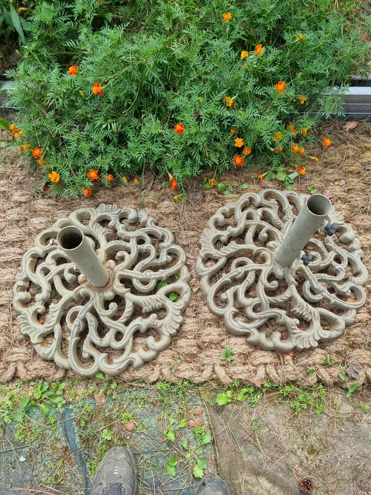 주물 저품으로 매우 무겁고 견고 합니다. 전원주택에 적합한 파라솔 받침대 입니다.가지러 오셔요.