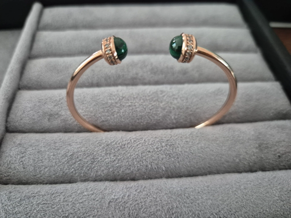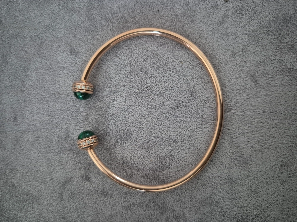 명품에서 자주 사용하는 소재인 초록색 말라카이트 원석에 모이사나이트로 둘러싼 팬던트가 달린 14k 뱅글팔찌 판매합니다. 원형팬던트는 360도 돌아갑니다. 오픈형 뱅글이라 사이즈이슈는 없을것 같아요 14k 각인되어있습니다. 상왕십리역 직거래가능하고 직접 보시고 구매를 결정해 주세요. 실제금이 아니거나 원석이 아니면 환불보장합니다. 제가 10년이상 거래한 지인 보석매장에서 작년에 구매한거니 믿고 구매하셔도 됩니다. 구매의사 있으신분들만 연락주셔요. 아끼던 제품을 사정상 판매하는거라 네고는 정중히 사양하겠습니다.