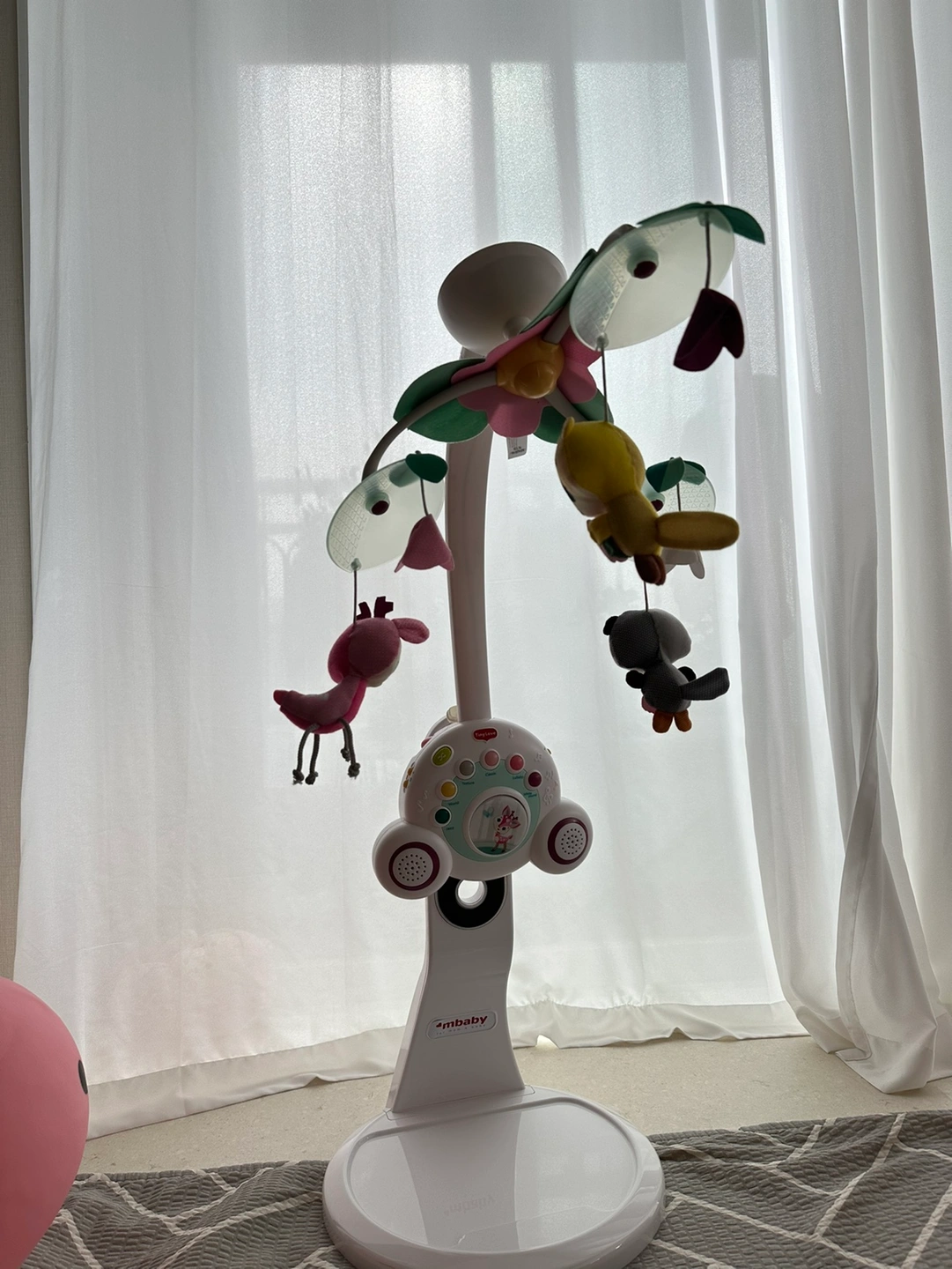 올해 3월에 아기용품매장에서 구매했어요 아기가 사용잘안해서 내놓아요 내놓으려고 배터리 방금 갈았어요,, 소독제도 뿌렸구요 작동 이상 없구 잔기스 조금 있는 정도입니다 흑백모빌도 같이 드려요 아기가 있어서 문고리 거래만 가능합니다