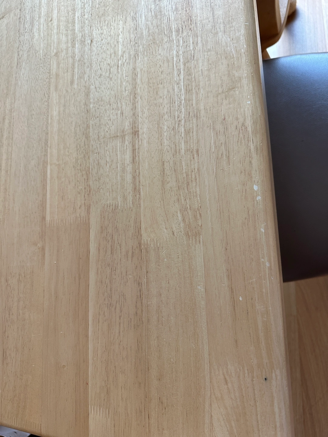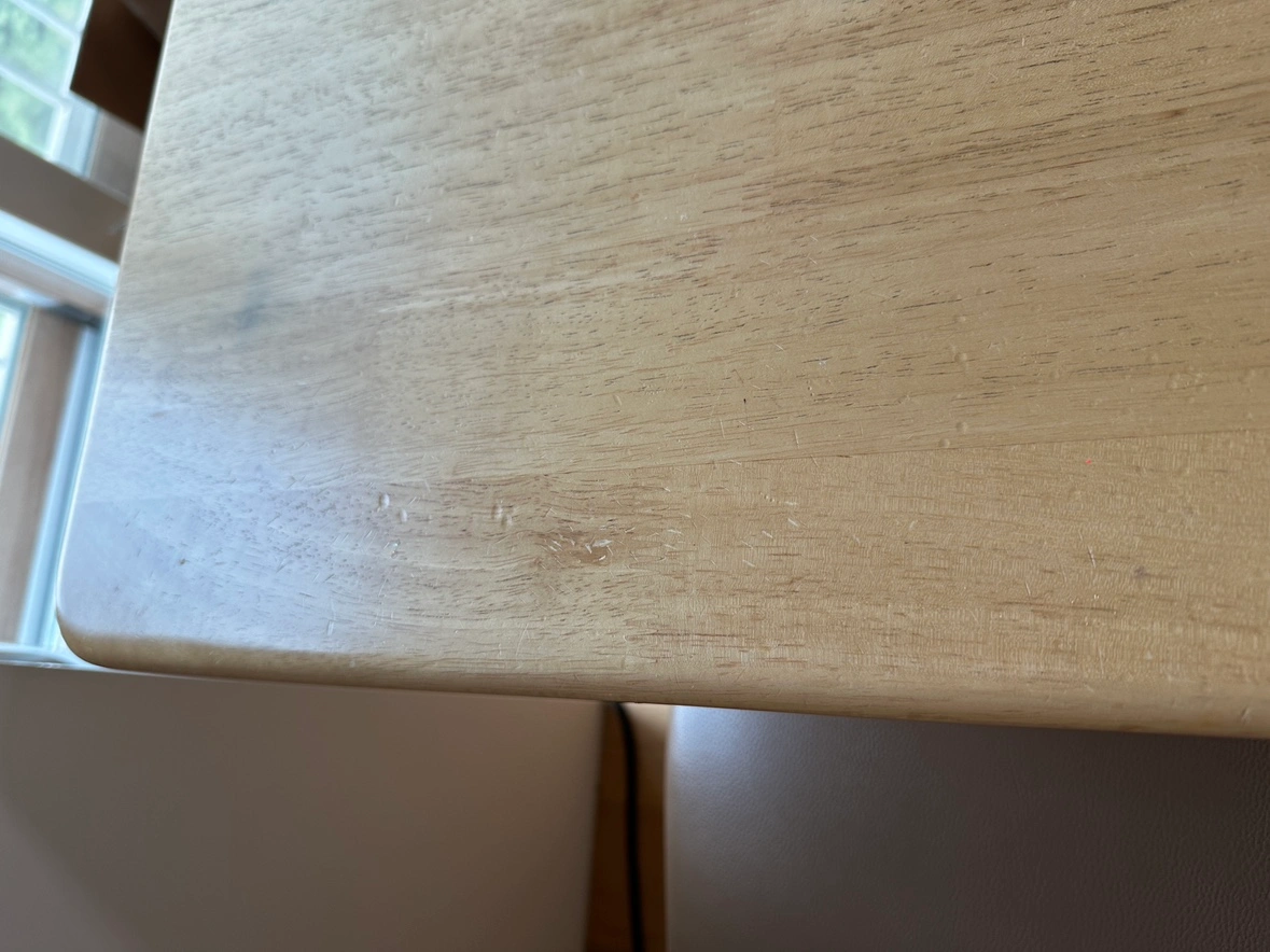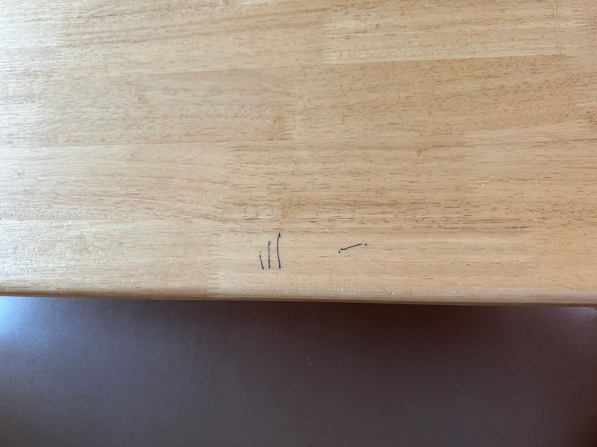 16년도에 가구단지에서 구입한 원목식탁세트입니다. 식탁 사이즈는 1200*750*730mm (가로 세로 높이) 이고, 의자2개는 회전 되는 의자에요. 쓰는데 큰 문제는 없으나 식탁에 사진과 같이 찍힌 자국과 펜자국이 있습니다. 사용감이 꽤 있으니 감안하시고 연락주세요. 환불 불가하며 오셔서 직접 가져가셔야 합니다.