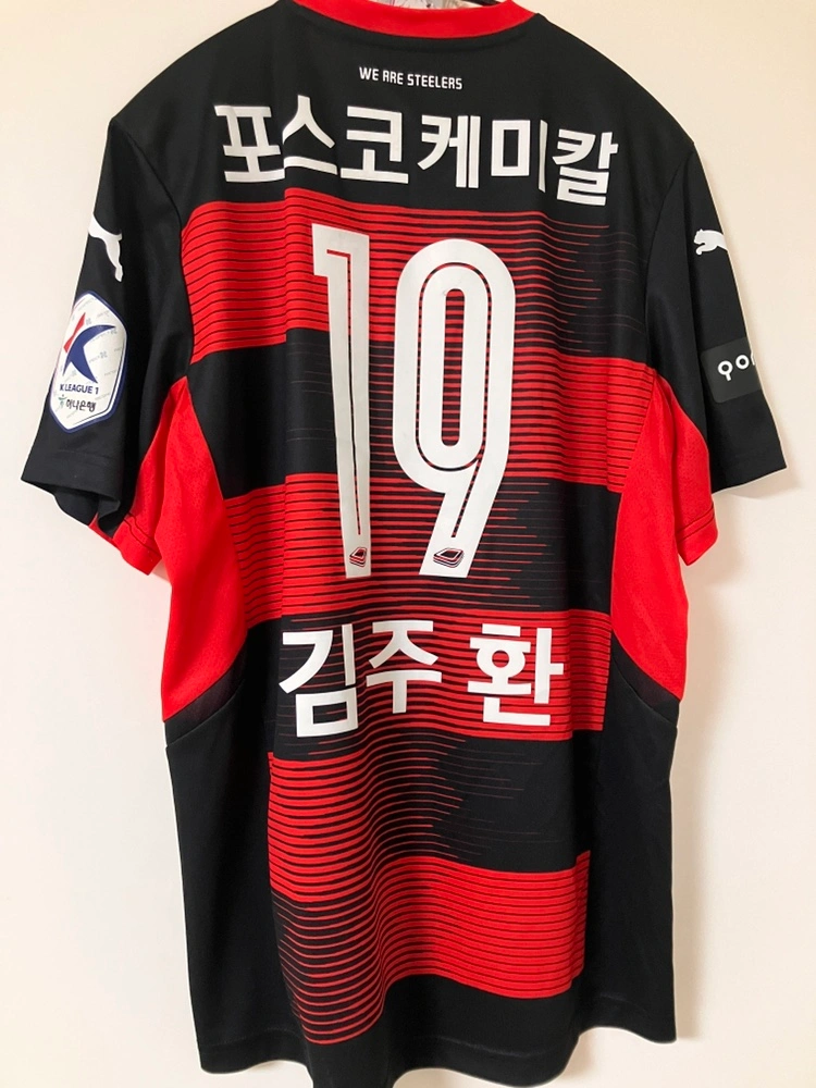 포항스틸러스 유니폼 판매합니다! 19번 김주환 마킹입니다! 마킹 사용 흔적이 있습니다! 사이즈 사진에 있습니다! 유니폼 수집하다가 흥미를 잃어 정리합니다! 가지러 오셔야 합니다!
