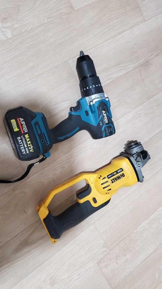 각각 4만원 입니다. 디월트 그라인더(예약중) 성능이 좀 약합니다. 고쳐쓸까 하다 다른 공구가 많아 처분 합니다. 가볍게 사용하는데는 지금도 사용하 고 있고 작동 가능합니다. 그라인더가 위험한데 손잡이에 안전가드 있는 유일한 모델이라 좋습니다. 배터리 미포함 본체만.4만 주피터 함마드릴 가볍게 함마 기능이 있어서 가정에서 칼브럭 작업에도 유용합니다. 간혹 스위치 트리거 접점이 안 되는 경우 있으나 다시 누르면 작동 하기에 그냥 썻던 제품입니다 드릴 본체 주피터 배터리 호환충전기 포함. 4만 오남 진주아파트 103동 직거래 합니다. 예약시 선입금 필수 입니다