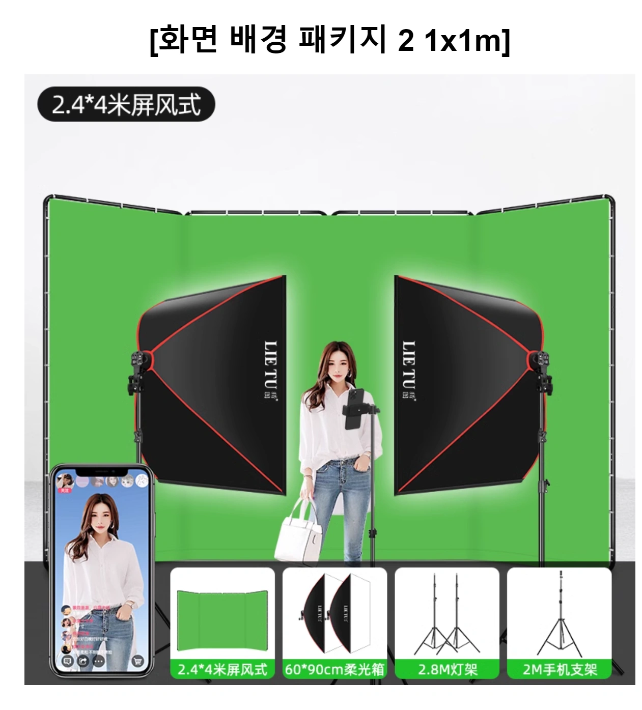 https://smartstore.naver.com/dandelionshipment/products/7773387268?NaPm=ct%3Dm0tdzd2f%7Cci%3Dcheckout%7Ctr%3Dppc%7Ctrx%3Dnull%7Chk%3D9aed9aac7c2c1ee04dabdd8959befc5a4c33c477 에서 구입했고 화면배경패키지 2 입니다. 크로마키 장비 사이즈 2.4 x 4M 조명 (조명은 택배박스 뜯지도 않았습니다.) 60x90cm * 크로마키 천 밑쪽에 검은색 기스자국 있습니다. 큽니다. 오셔서 가져가셔야합니다.