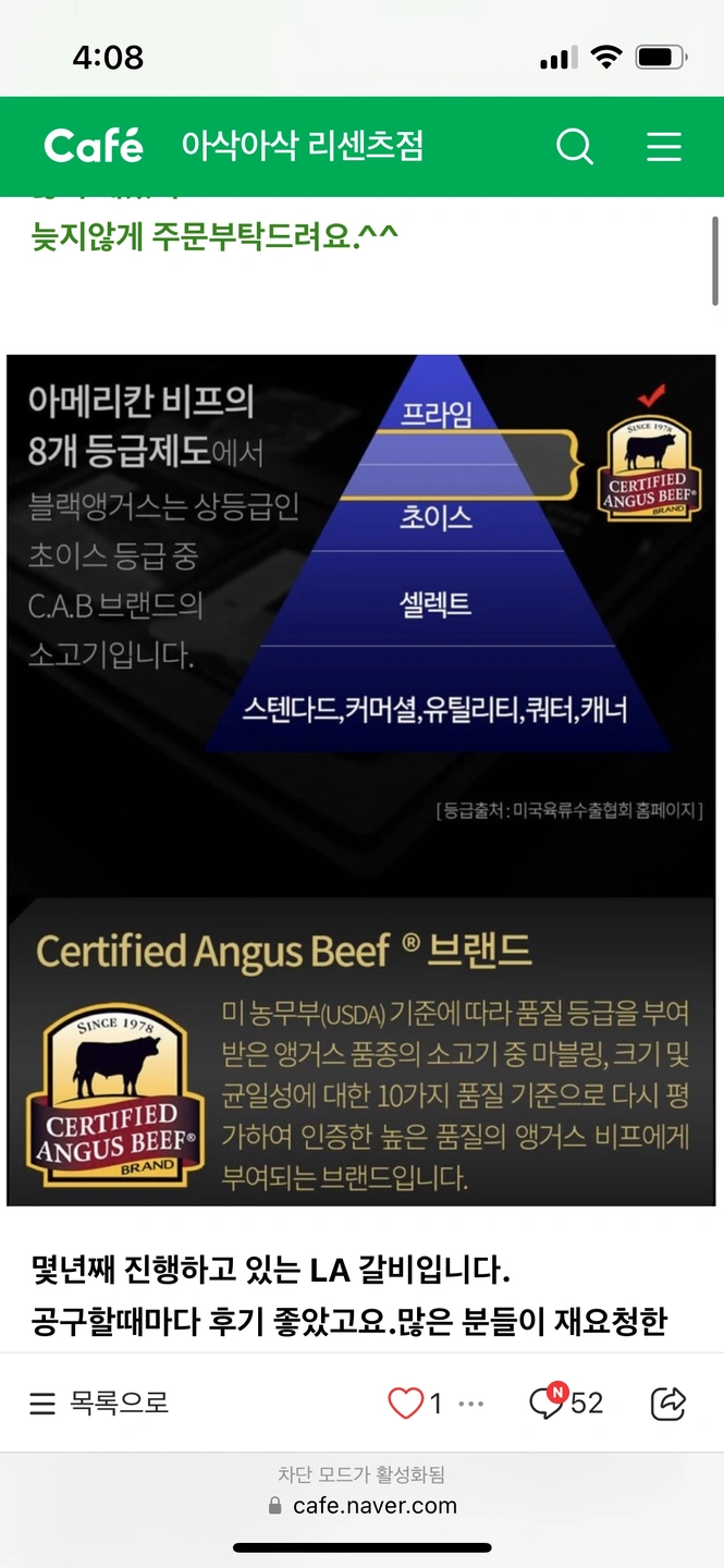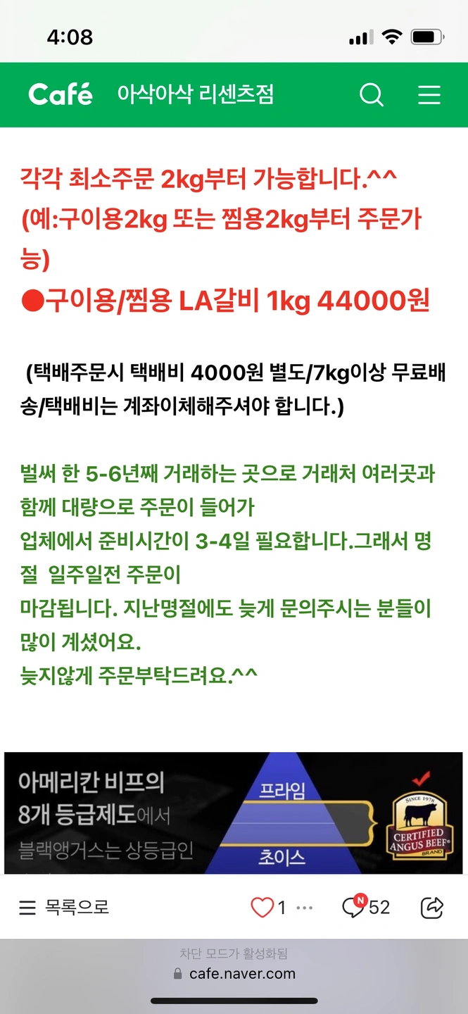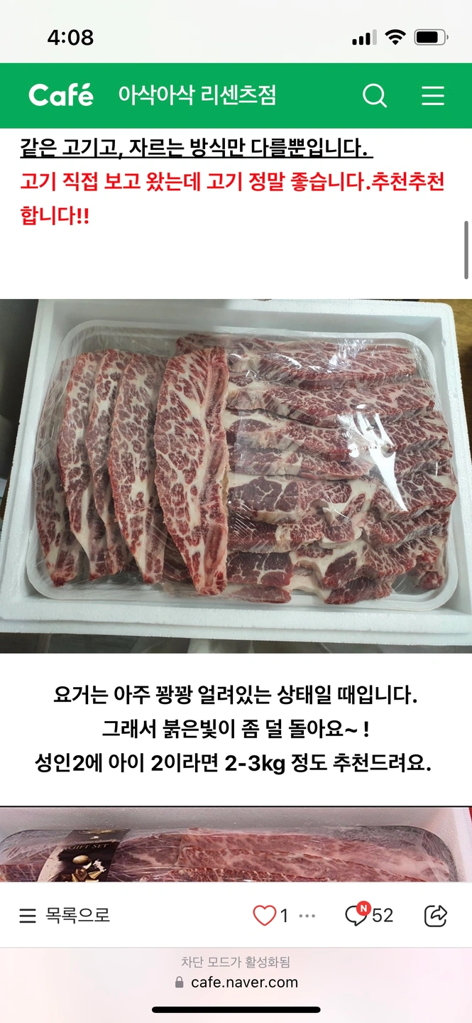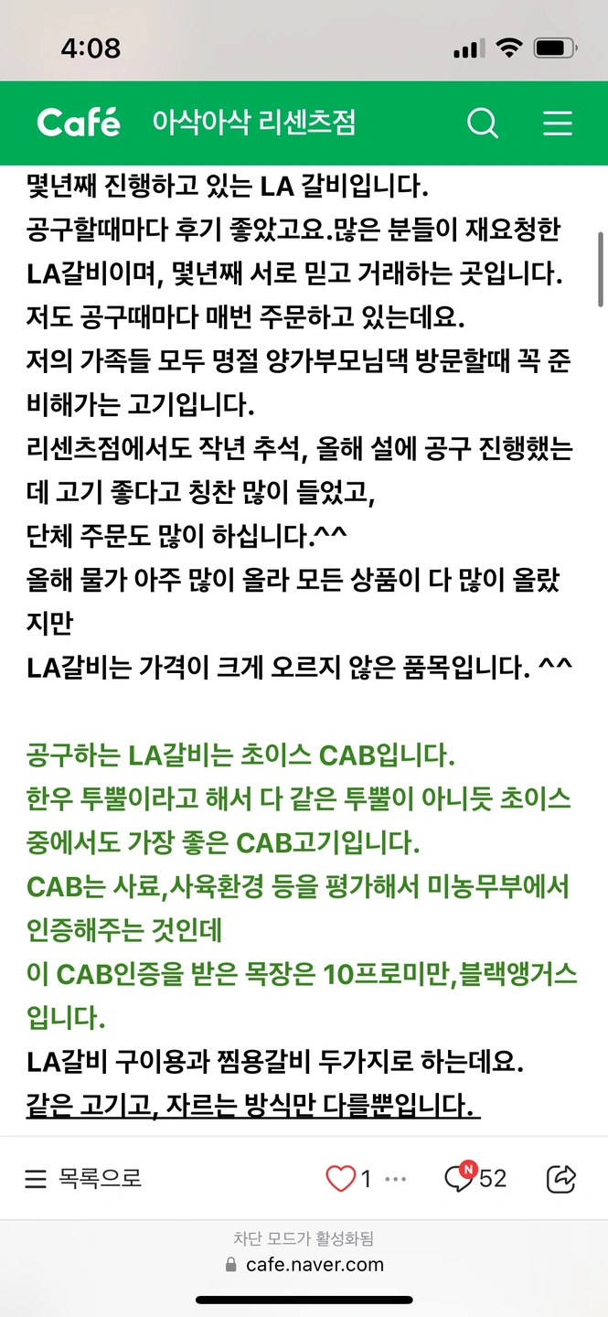 안녕하세요. 저번주 아삭아삭 리센츠점에서 공구했던 LA갈비인데요, 선물 들어온 게 있어서 공구 놓치신 분이나 필요하신 분게 넘겨드리려 합니다. 2키로 2팩 이고 2키로 한팩도 가능합니다. 픽업날은 이번주 수요일이고 2키로 88000원입니다. 연락주세요~~ (배달은 마감됐는데 픽업 불가하시면 제가 직접 배달 해드릴 수 있어요~ 단, 엘스에서 가까워야 가능해요~ )