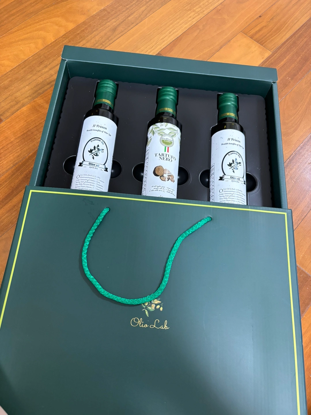명절 선물로 받았지만 집에 올리브유 너무 쌓이고 싸여서 새 제품 올려놓아요. 브랜드는 olio lab 이고 네이버 smart store 에 있습니다. 이 구성으로 되있는 제품은 못찾겠지만, 거기서 가장 저렴한 3개짜리 세트 30000원에 팔리는거 고려해 반값 15000원에 올려놓아요~ 3병중에 2개는 올리브유이고, 1개는 블랙 트러플 오일입니다. 트러플 오일은 다른 브랜드인거같아요. 네고/반품 안됩니다. 배송비 부담하시면, GS 반값택배 가능합니다