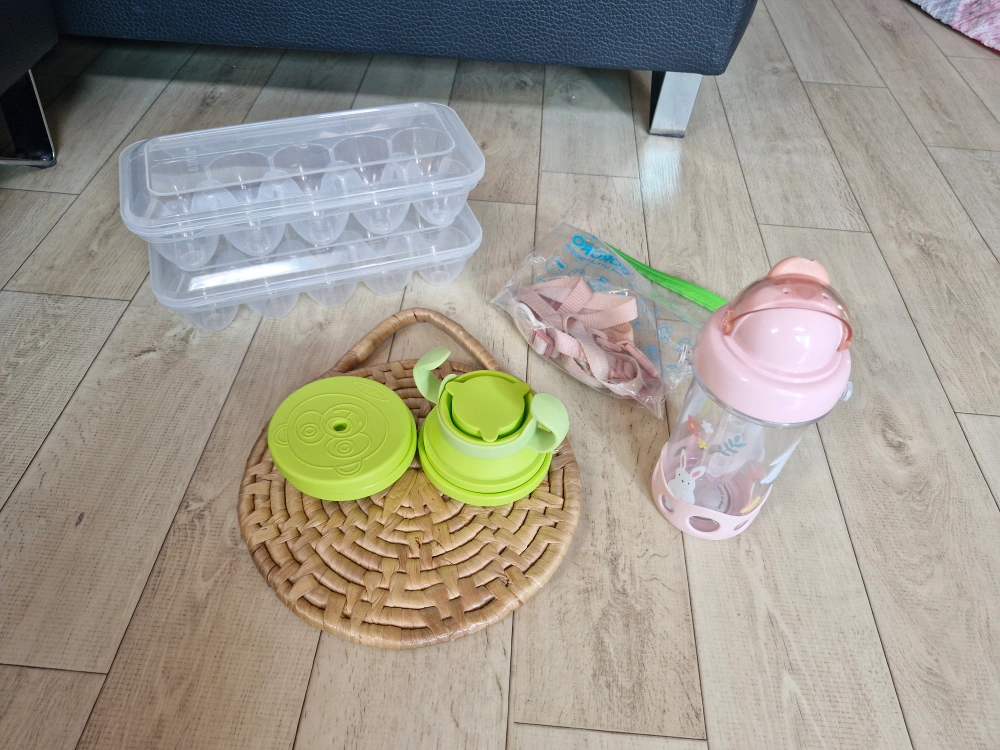 여러가지 다함께 가져가세요~아이 물통,실리콘 컵 ,달걀 트레이는 편한데 계란을 잘 안먹어서 별로 쓸일이 없네요 필요하신분 가져가세요~^^