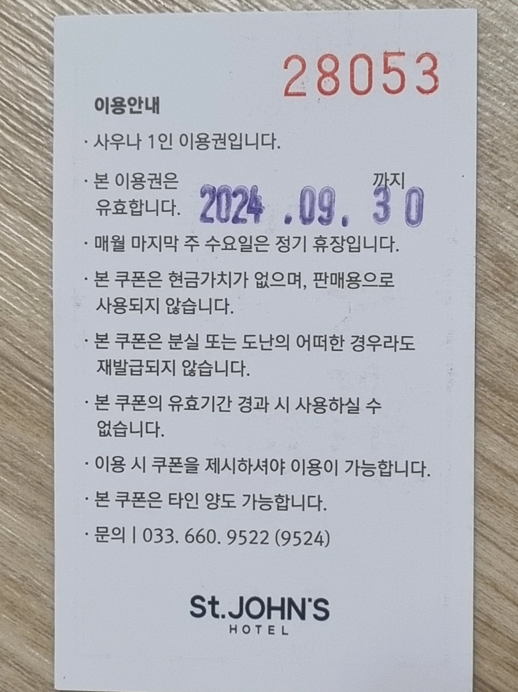 세인트존스 사우나권 판매합니다 9월 30일까지 사용 가능한 티켓입니다 장당 8천원이고 여러장 구매가능합니다 (최대 25장)