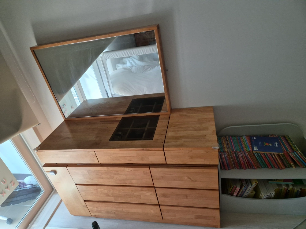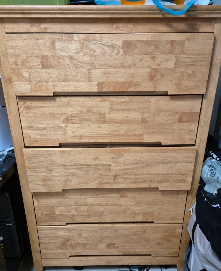 19년도에 가구 다같이 구매했고 이사하면서 정리하려고 판매해요. 장농2개 화장대1개 거실장1개 5단서랍장 1개 개당 50,000원이에요. 무늬목아니고 원목이라 아까워서 저렴하게 올린거에요. 필요하신분 연락주시면 크기알려드릴께요. 직접가져가셔야하고 10/31이사라 이사날오시는거면 1층까지는 내려드릴수있어요. *화장대에 유리금이 살짝가있고 작은 서랍마지막에 얼룩이 있어요!!! *화장대,5단서랍장,장농2개는 예약중입니다!! 거실장만 남았어요