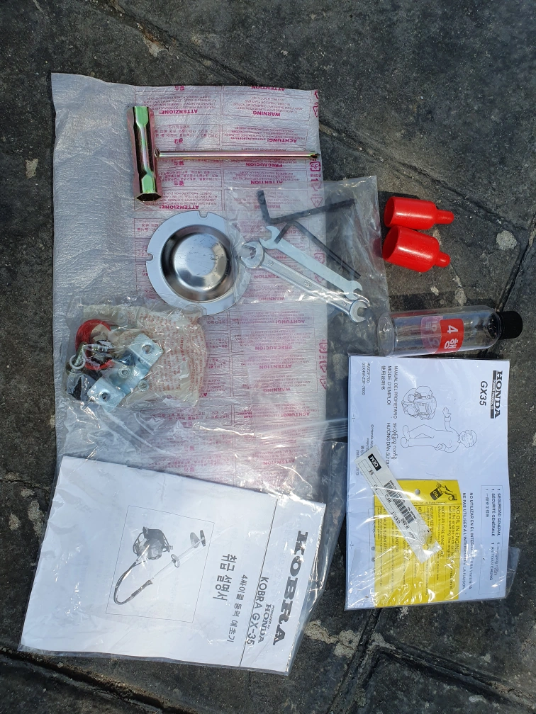 HONDA 4행정 예초기입니다 GX35모델이고요. 구입 후 단 2회 사용한 신품같은 상태입니다. 설명서와 공구들도 미개봉 상태로 모두 있고요. 별도 추가로 구매한 예초기 안전판 고급형도 함께 드립니다