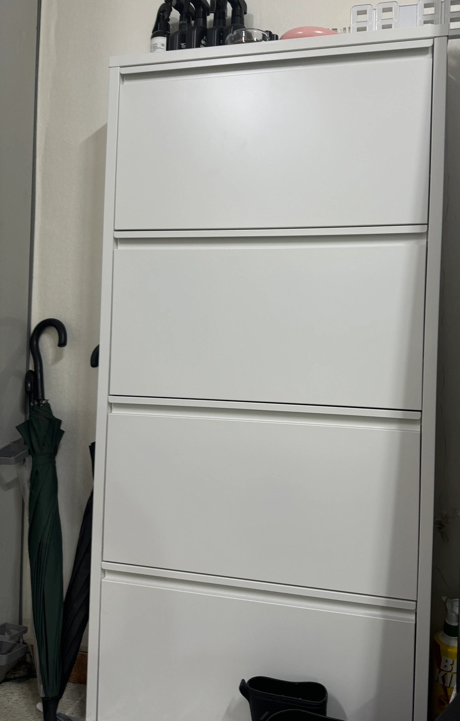 1년 조금 넘게 사용했어요 깨끗하게 이용했고 신발도 꽤 많이 들어갑니다 철제라 무게감이 조금 있어서 벽에 고정할 필요없이 벽면에 비스듬하게 기대서 사용하시면 앞으로 넘어질 일 없습니다 직접 와서 가져가셔야합니다!