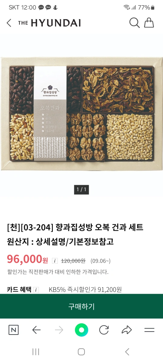 https://m.thehyundai.com/front/pda/itemPtc.thd;HDSMART_JSESSIONID=ezTfBl8mdSMO_nNaFMCyH6IYqHBRea-ides0CSYj7CnFuhcE6uc9!1307861687?HDMALL_JSESSIONID=ZLffBl7wDavhVep36dNnsmR82CrPgsTu-mt7nbLFwLZG1NIiWT2u!1975030316&ReferCode=H02&tcCode=0000001712&kwCode=0000000000&slitmCd=40A1951185&psnzAplyYn=N&vipExclYn=N&vipExpsYn=N&psnzGrpYn=N&vipBuyPossYn=N 현대백화점 무역센터점에서 도착한 국내산 견과류세트예요 새상품 그대로여서 비닐 제거하셔서 선물하시기 좋아요 쇼핑백은 없어서 현대백화점에서 따로 구입하셔야 할 거 같아요