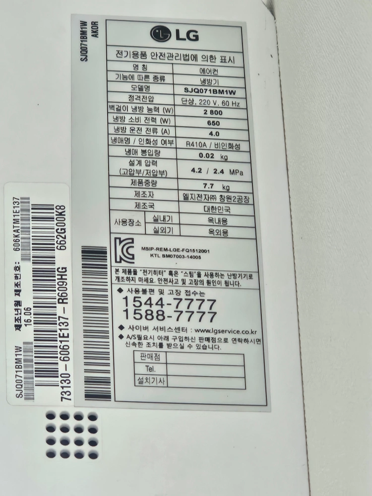 16년6월 구입 1년전 향균필터교체와 클린서비스 받았습니다. 작동 잘되고 벽걸이 에어컨은 거의사용 안했습니다. 25일이후로 가져가실수 있어요~ 이사로 인해 판매합니다.