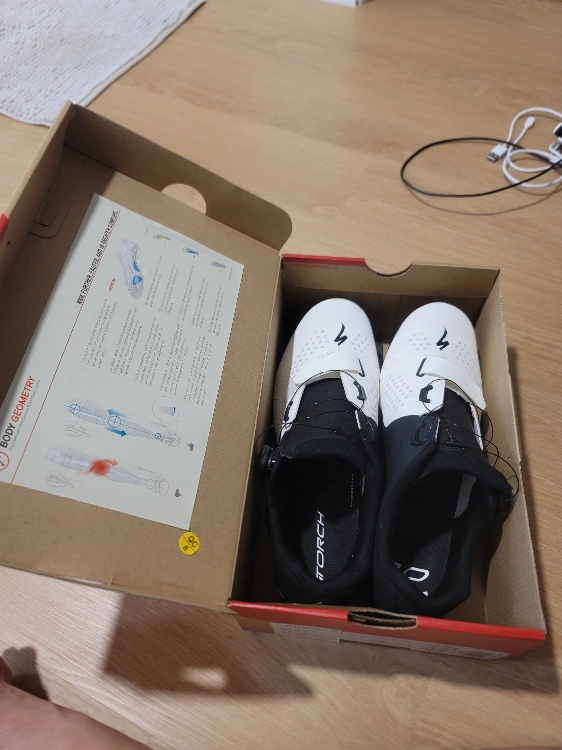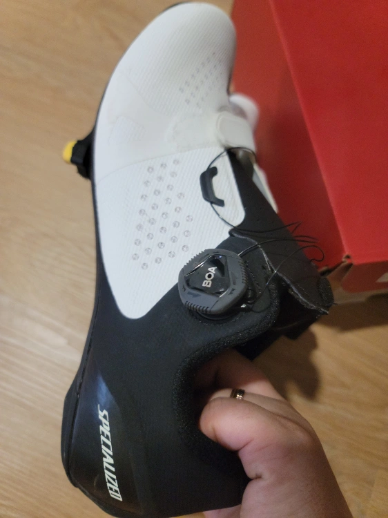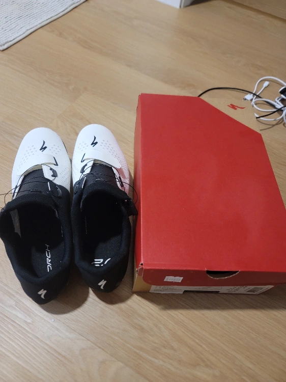 사이즈 283 실착 1회 주행 5km미만 보아다이얼 화이트 클릿슈즈 판매합니다 구매당시 매장에서 할인받아 현찰 15만원 지불하였습니다 자전거 열심히타려했는데 육아로 용품 처분합니다