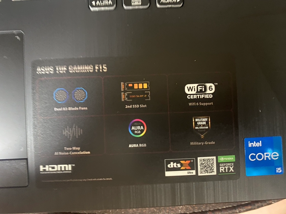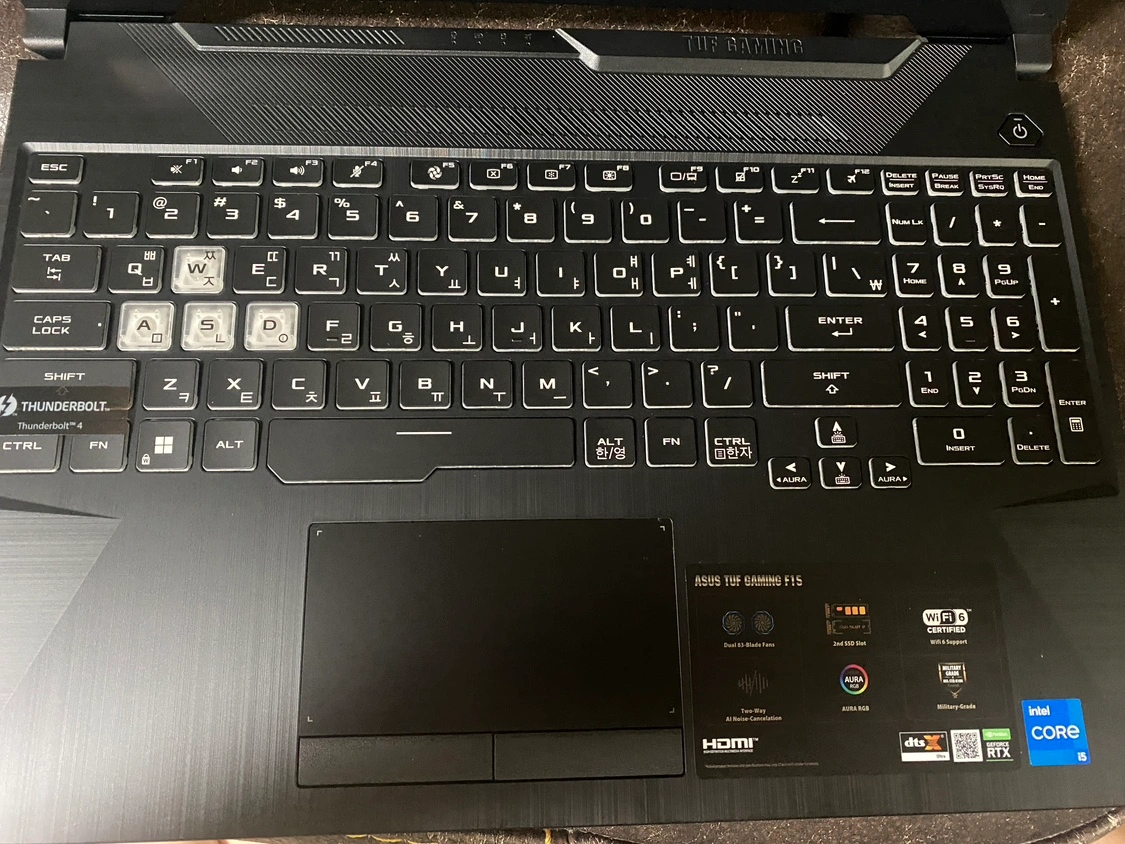설정도 하지 않은 새 노트북입니다 . 어머니가 잘못 사신 노트북 팝니다 … 게이밍용을 왜 어머니에게 파신건지 … 하 … 모델명 : FX506HC-11535T 프로세서 : Intel® Core™ i5-11400H 메모리 : 16GB DDR4 저장장치 : SSD 512GB 디스플레이 : 15.6인치(39.6cm), FHD, 144Hz 그래픽 : NVIDIA® GeForce RTX™ 3050 Laptop GPU 운영체제 : 윈도우11 홈 포함 크기 : 35.9 × 25.6 x 2.28 ~ 2.45 cm 무게 : 약 2.3kg